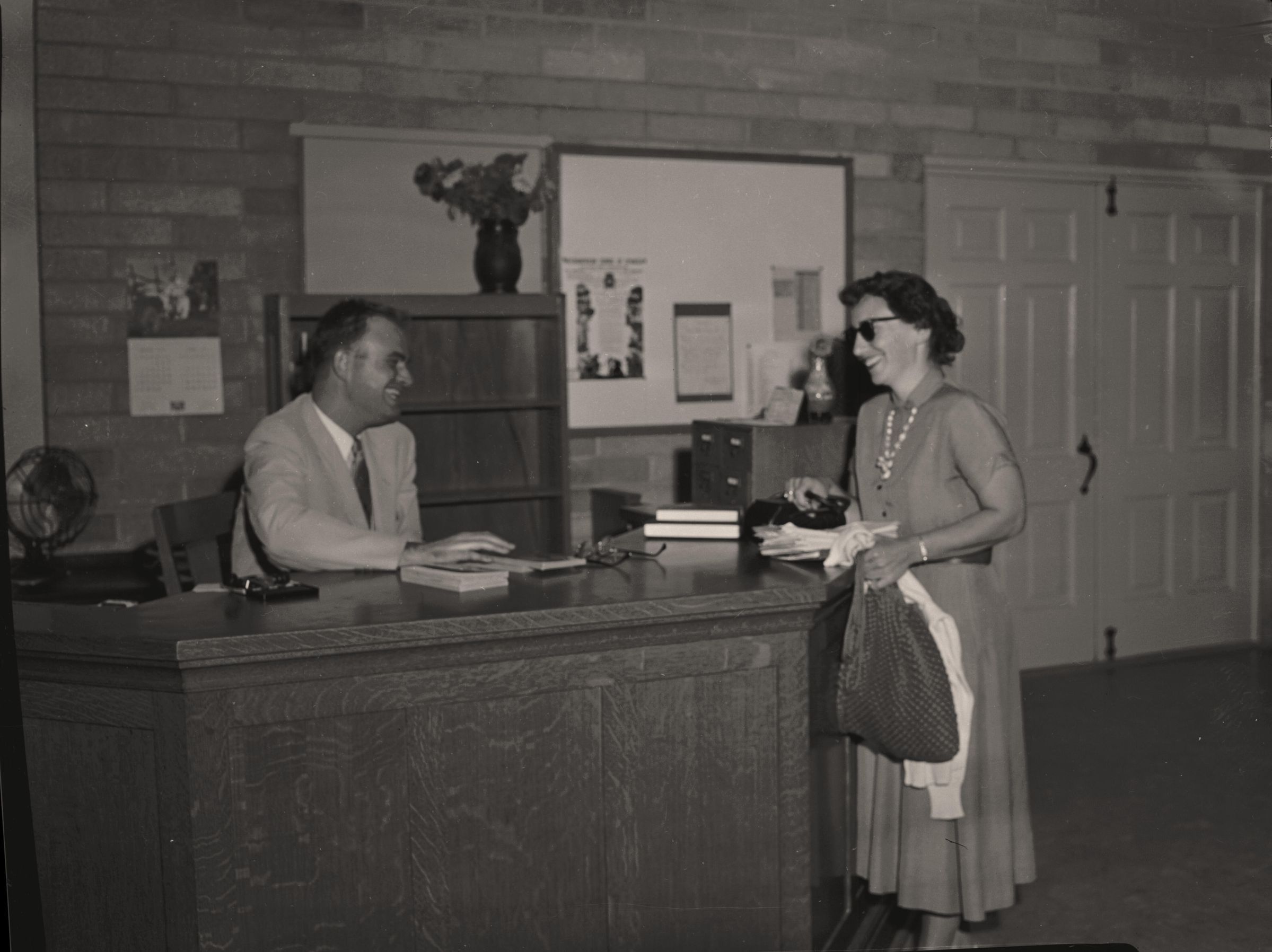 Librarian John Schmuck assists a library patron. LGL008Collection