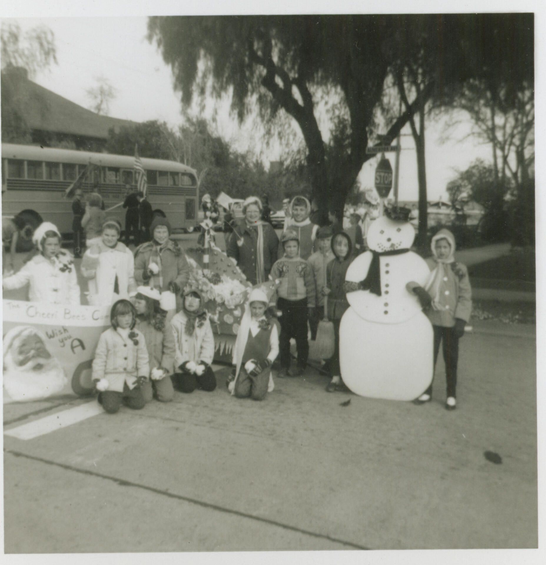 December 7, 1963 - Christmas Parade. The Cheeri Bee's Camp Fire Girls Group walking unit received Fourth Place Award. SHU187aCollection