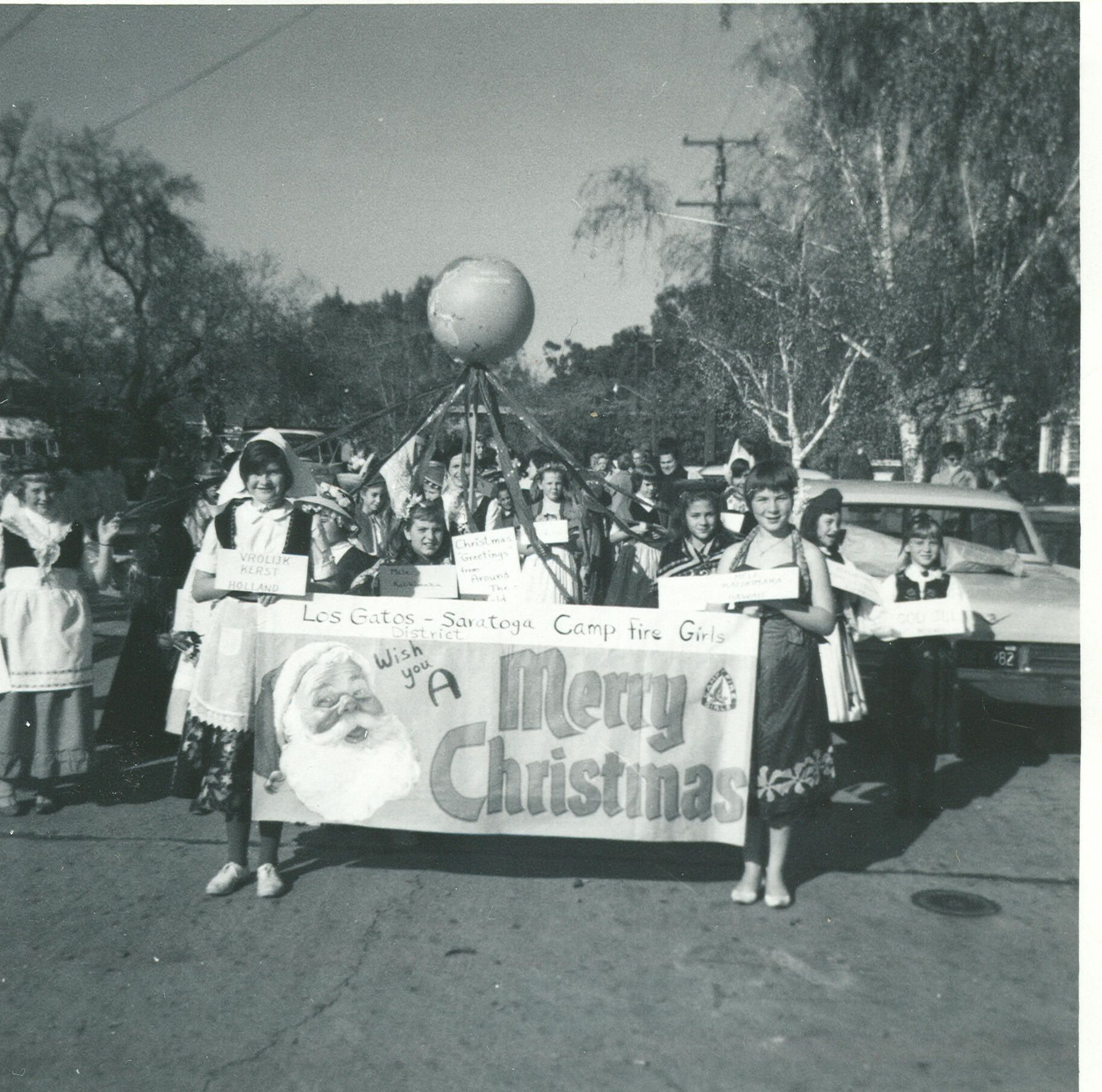 December 5, 1964. Camp Fire Girls from Los Gatos District marching in the Los Gatos Christmas Parade. SHU165bCollection