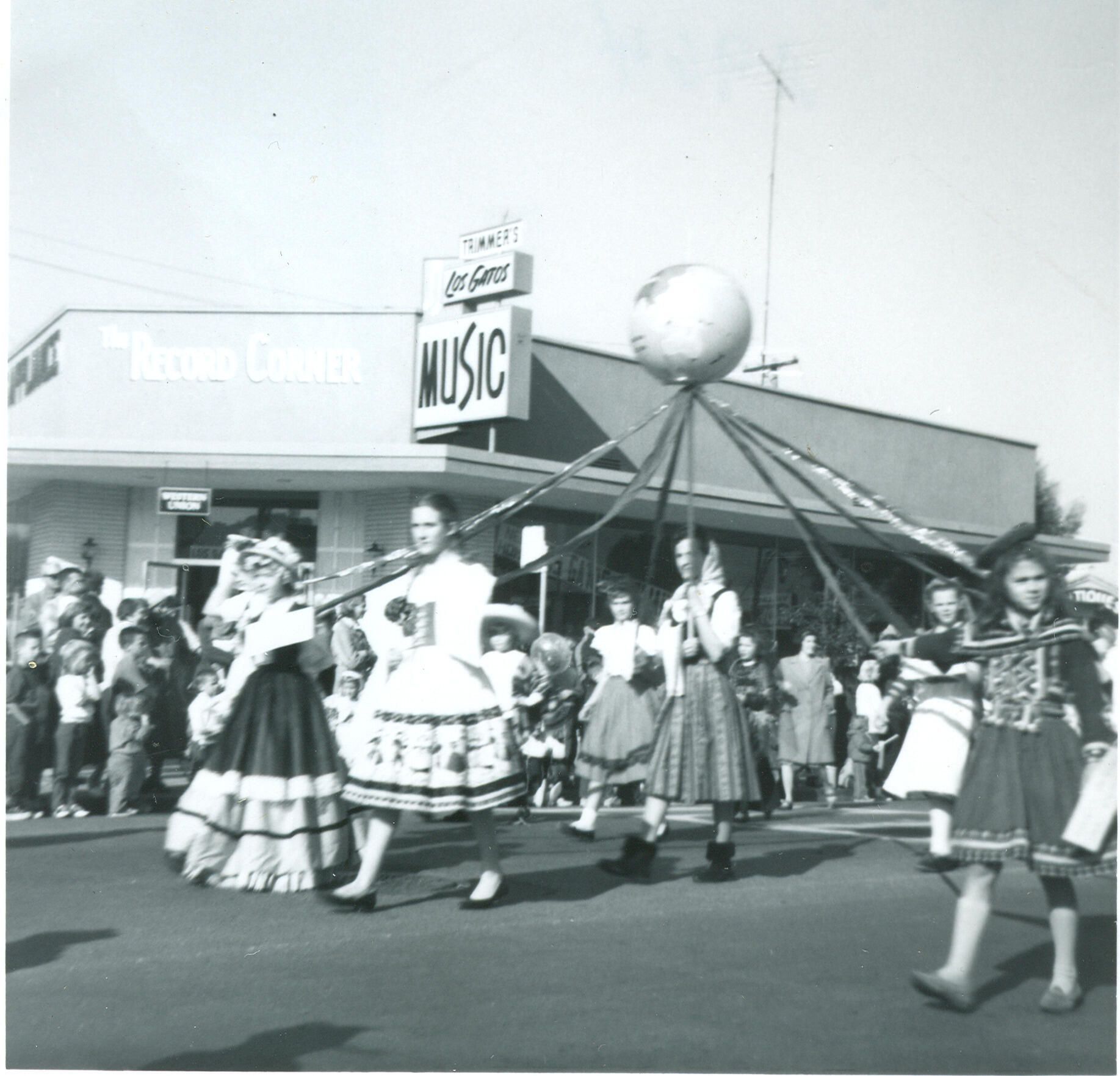 Camp Fire Girls from Los Gatos District marching in the 1964 Los Gatos Christmas parade. SHU164dCollection