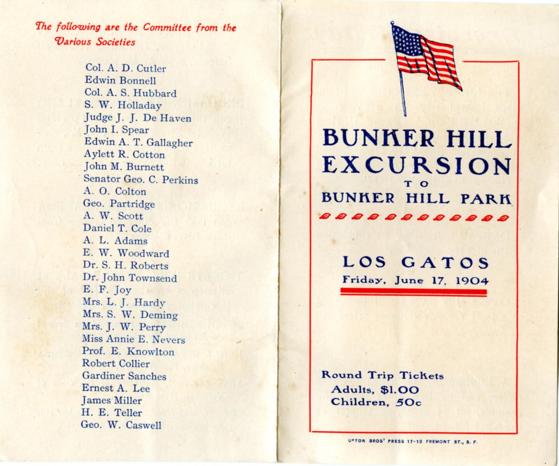Program for the Bunker Hill Excursion to Bunker Hill Park. BH014ACollection