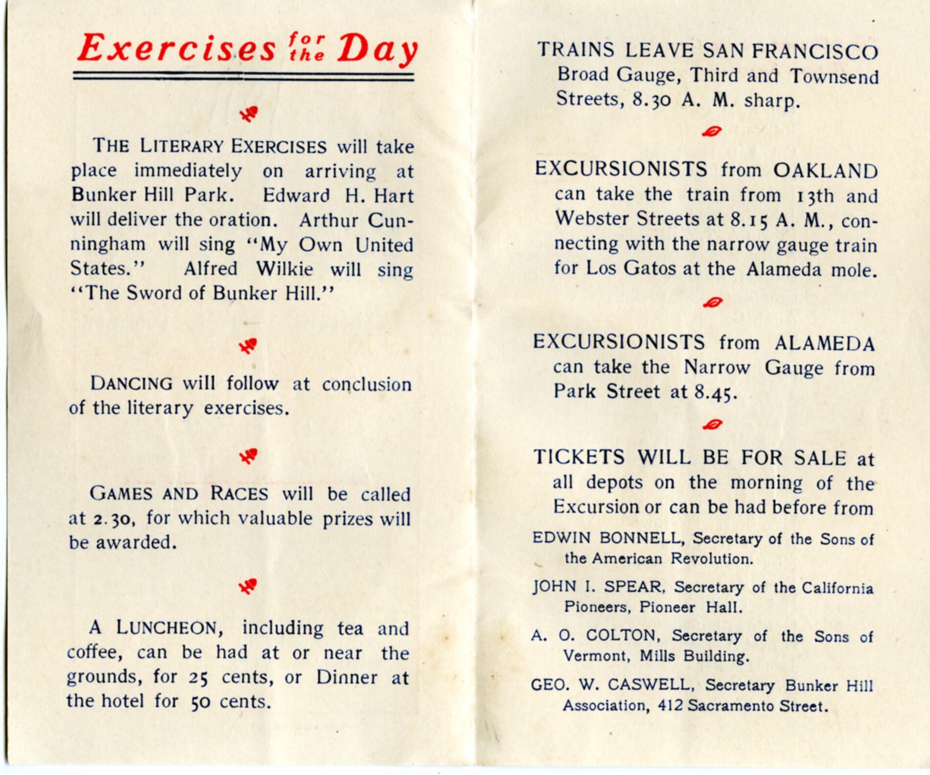 Program for the Bunker Hill Excursion Exercises of the Day. BH014BCollection