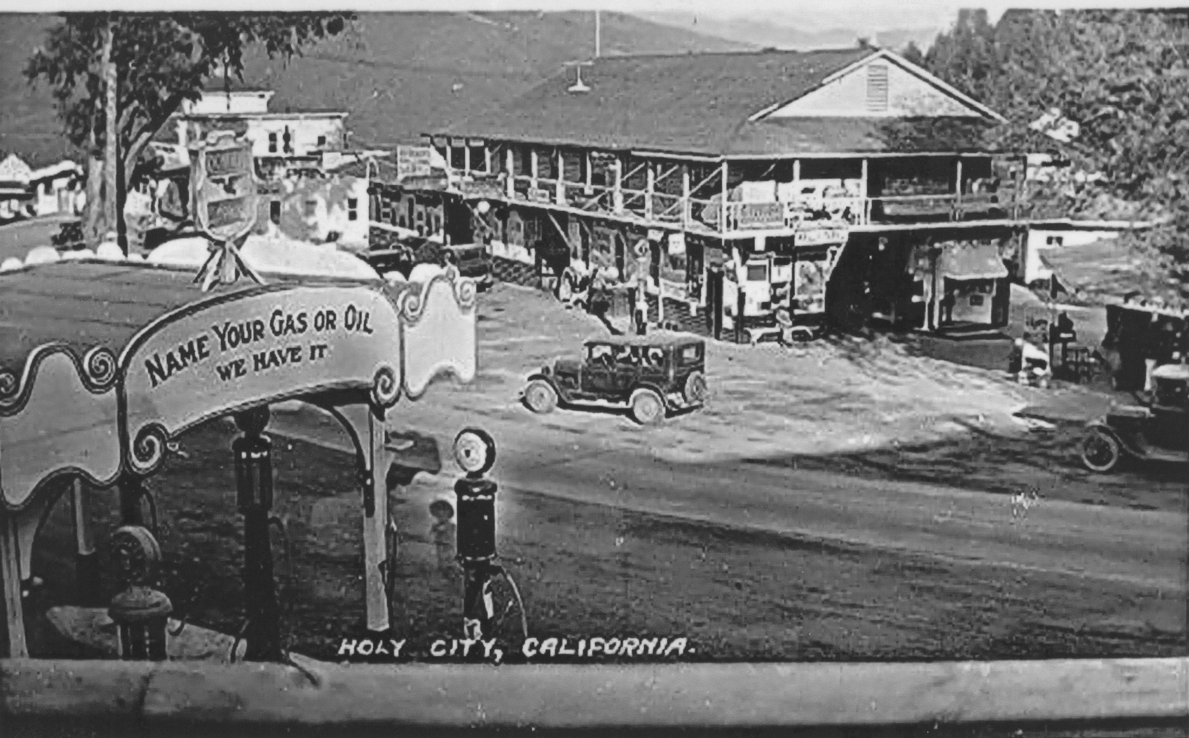 Holy City in its heyday. View is toward the north. Tourists found Holy City a fascinating, colorful, garish place to stop on the mountain road, a chance to hand-pump some gasoline, purchase a cornucopia (ice cream cone), visit the monkeys in the zoo, and pay 10 cents to look at the moon through a telescope. MTN136Subject