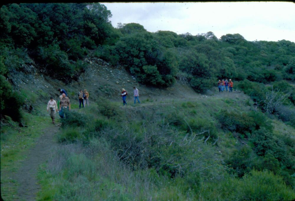 In 1871, San Jose Water Company built a wooden flume along the east bank of Cats' Canyon in order to pick up water at Jones Dam above Alma and bring it to Los Gatos. Reconstructed in 1880, the flume provided a romantic walkway for lovers, although this practice was somewhat dangerous and was discouraged by Water Company officials. Encounters with wild cats and skunks were not infrequent. The three-mile long wooden flume was replaced by a galvanized steel aqueduct in 1935. BAK002Collection