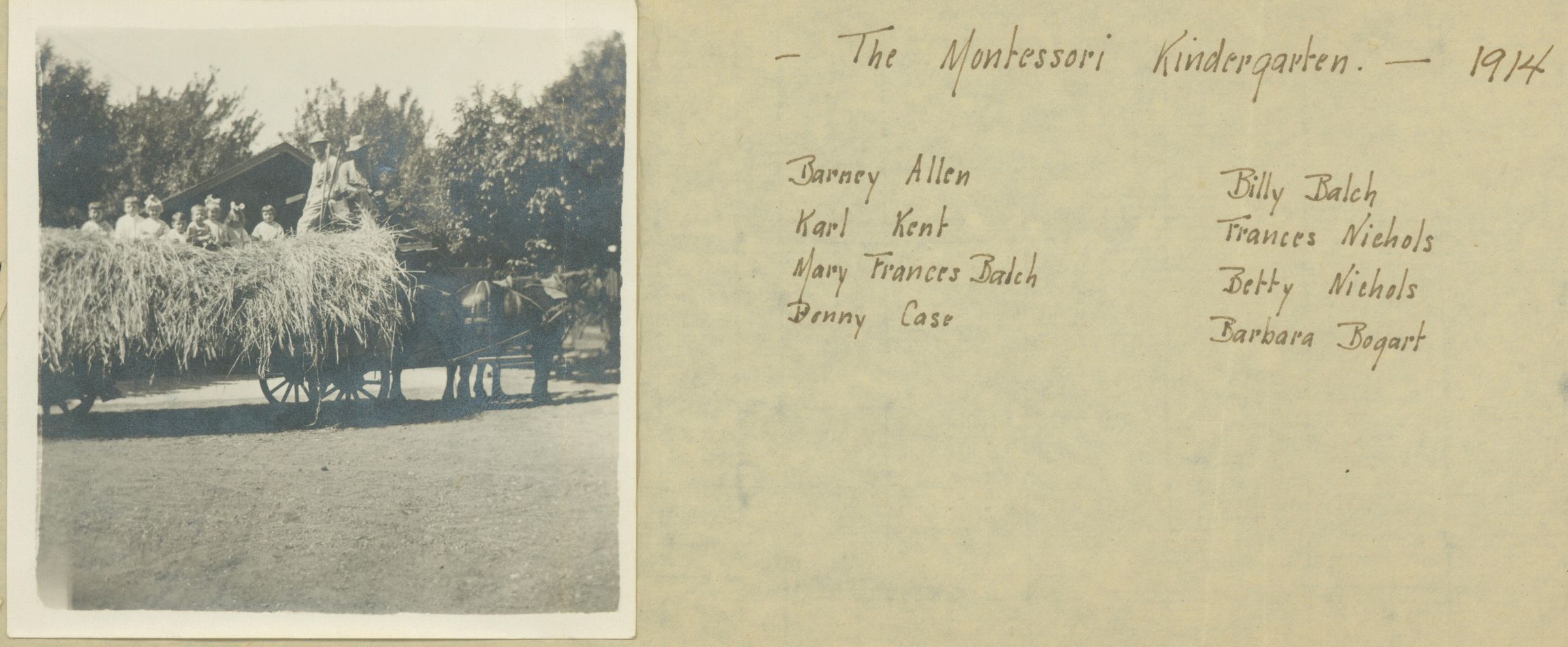 The kindergarten class at the Montessori School held in the basement of the Case home on Massol Ave. Students are Barney Allen, Karl Kent, Mary Frances Balch, Donny Case, Billy Balch, Frances Nichols, Betty Nichols, Barbara Bogart. BBC021Collection