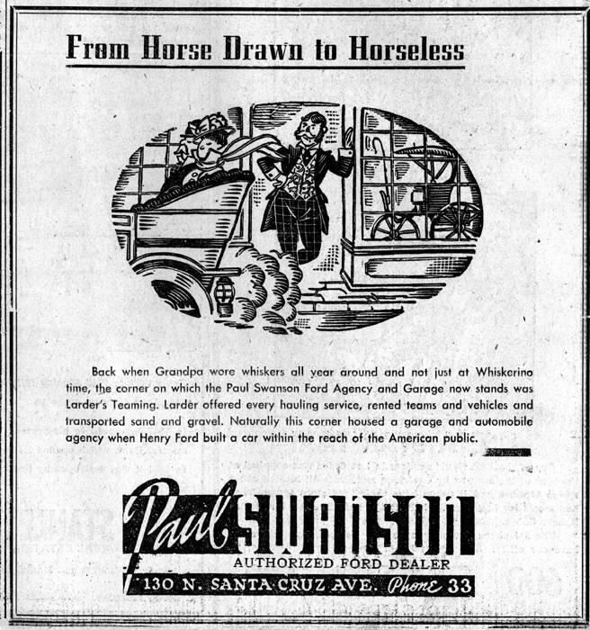 Paul Swanson Ford was located at 130 N. Santa Cruz Avenue in 1940. AD016Collection