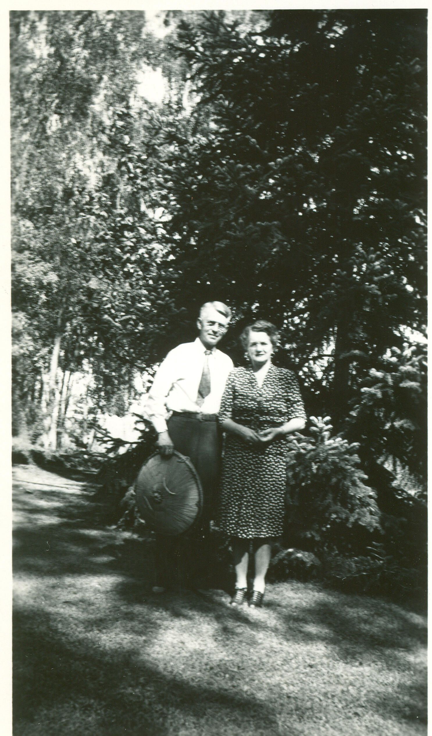Dr. and Mrs. Harold Porter, pictured at their home on Saratoga Road, in the "Uplands." Dr. Porter was a longtime Los Gatos dentist who brought his family to California from Wilmar, MN. His office was located in the Rankin Building. BGF016Collection
