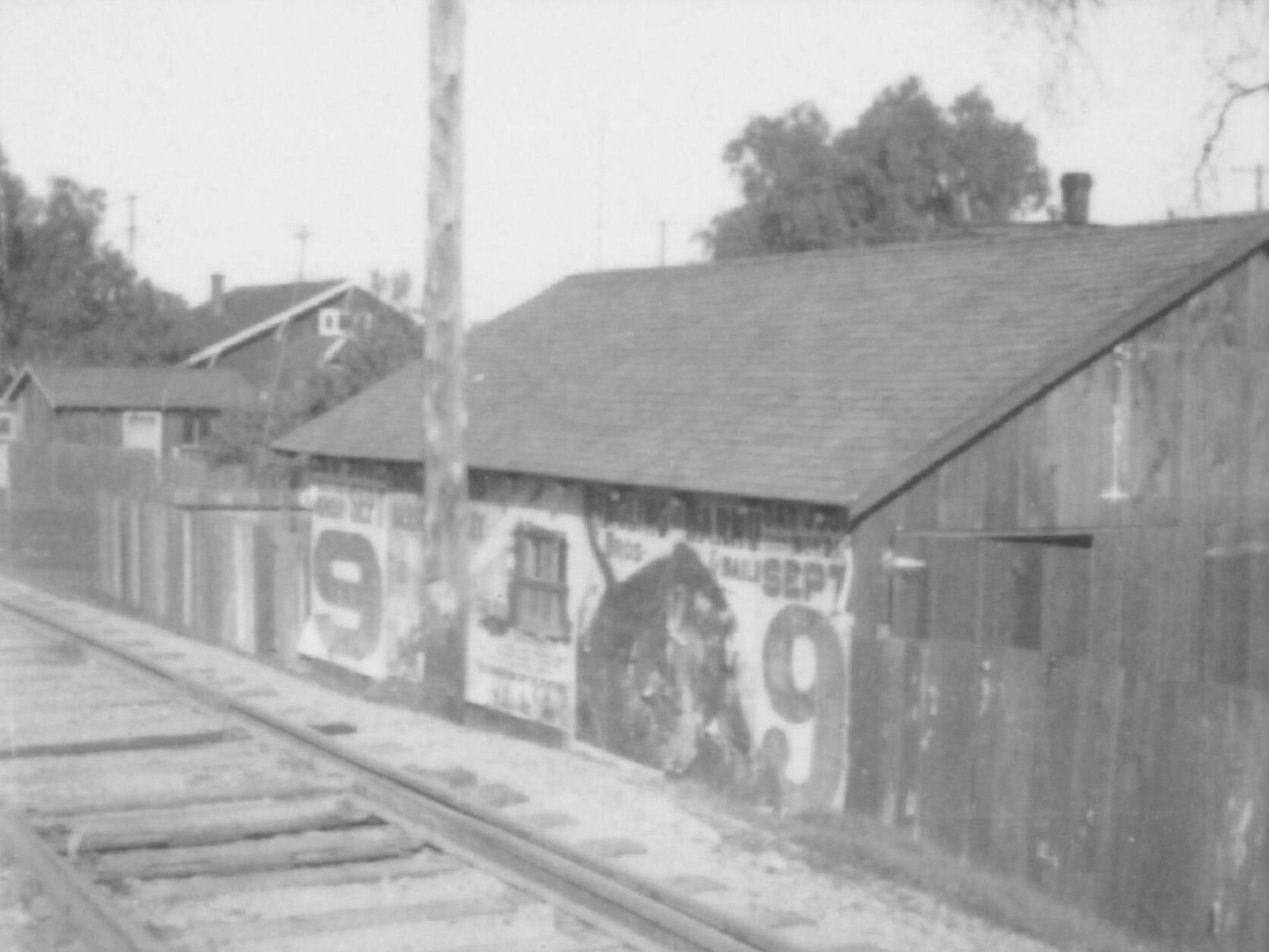 Backyards along the Southern Pacific Railway tracks,with shed in foreground, and residences on background.Collection
