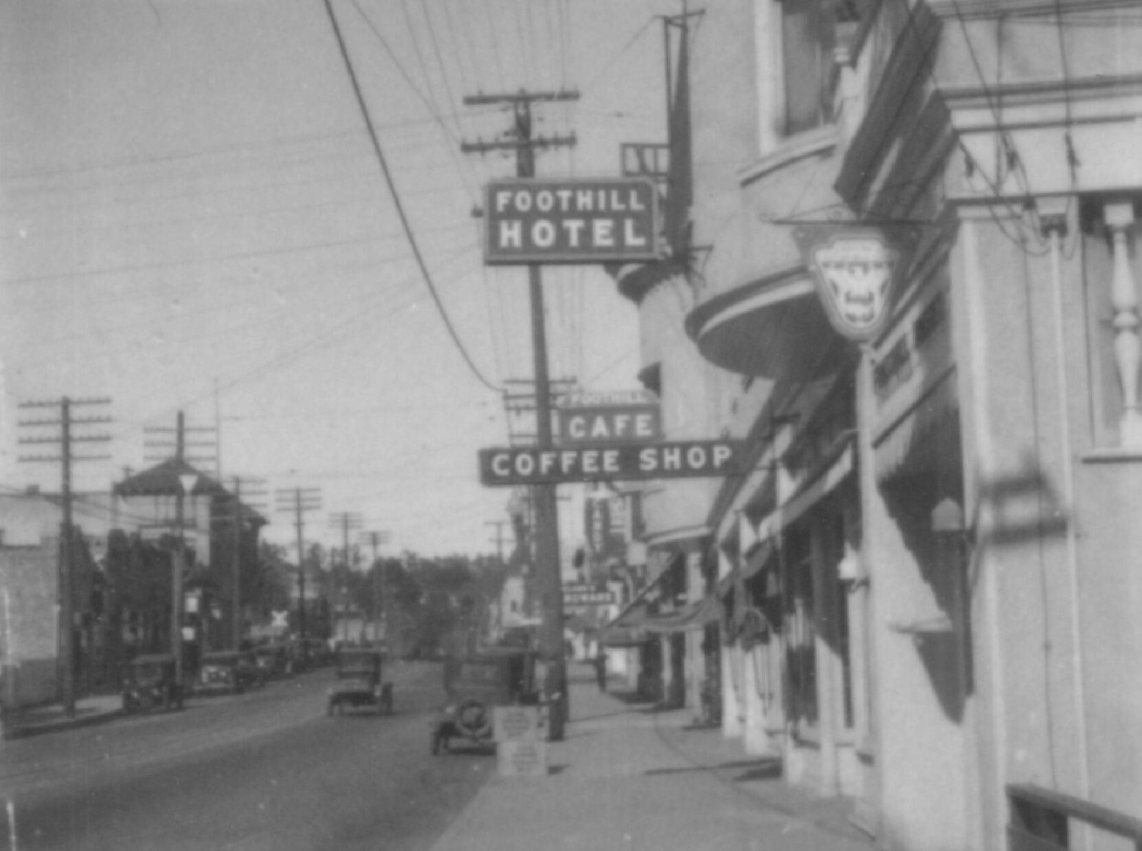 The Foothill Hotel at 14 W. Main (at the bridge) and Foothill Coffee Shop at 16 W. Main.
