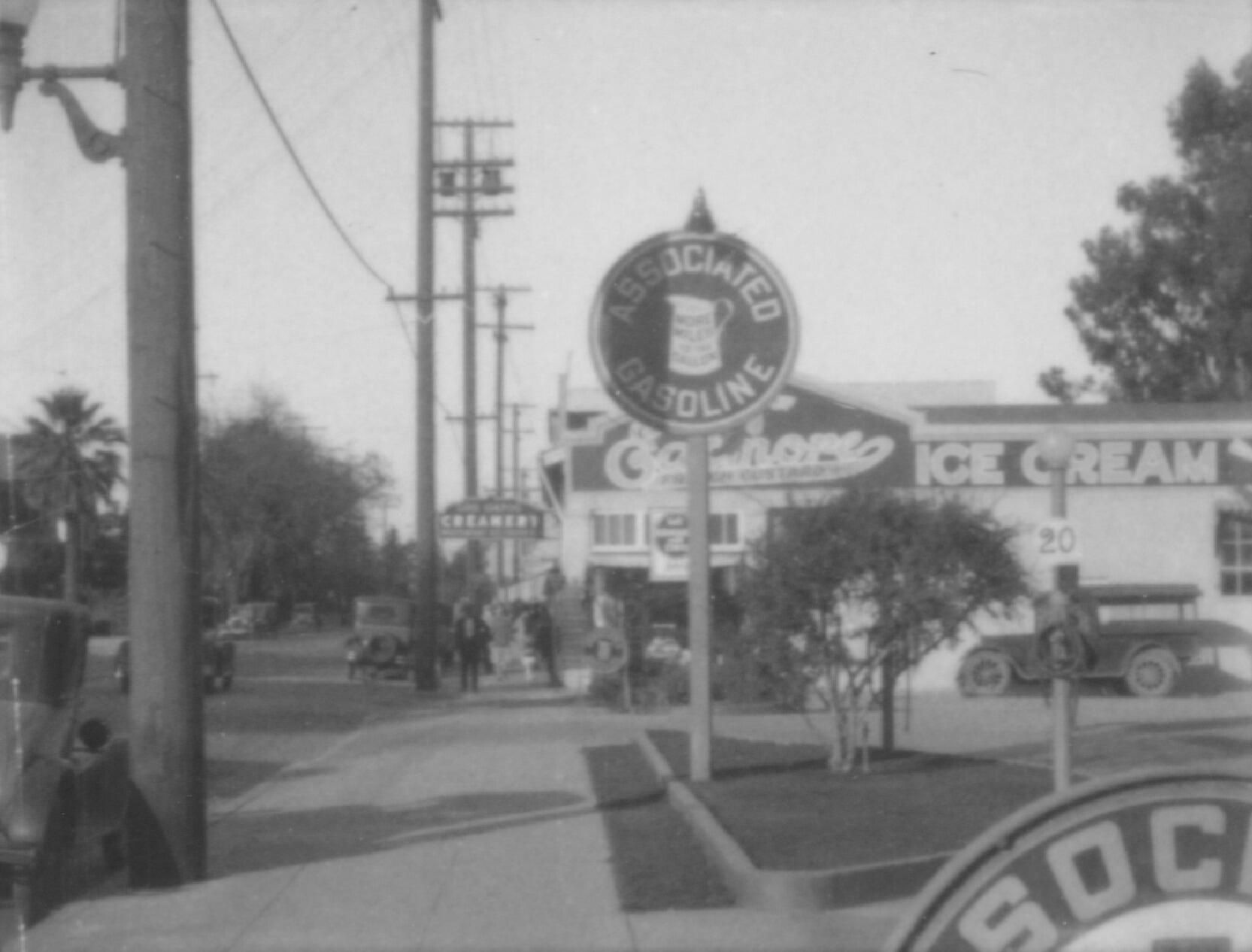 Purviance Service Station at the corner of No. Santa Cruz Ave. and Elm Street. Los Gatos Creamery (Eatmore) was at 46 No. Santa Cruz Ave.Collection