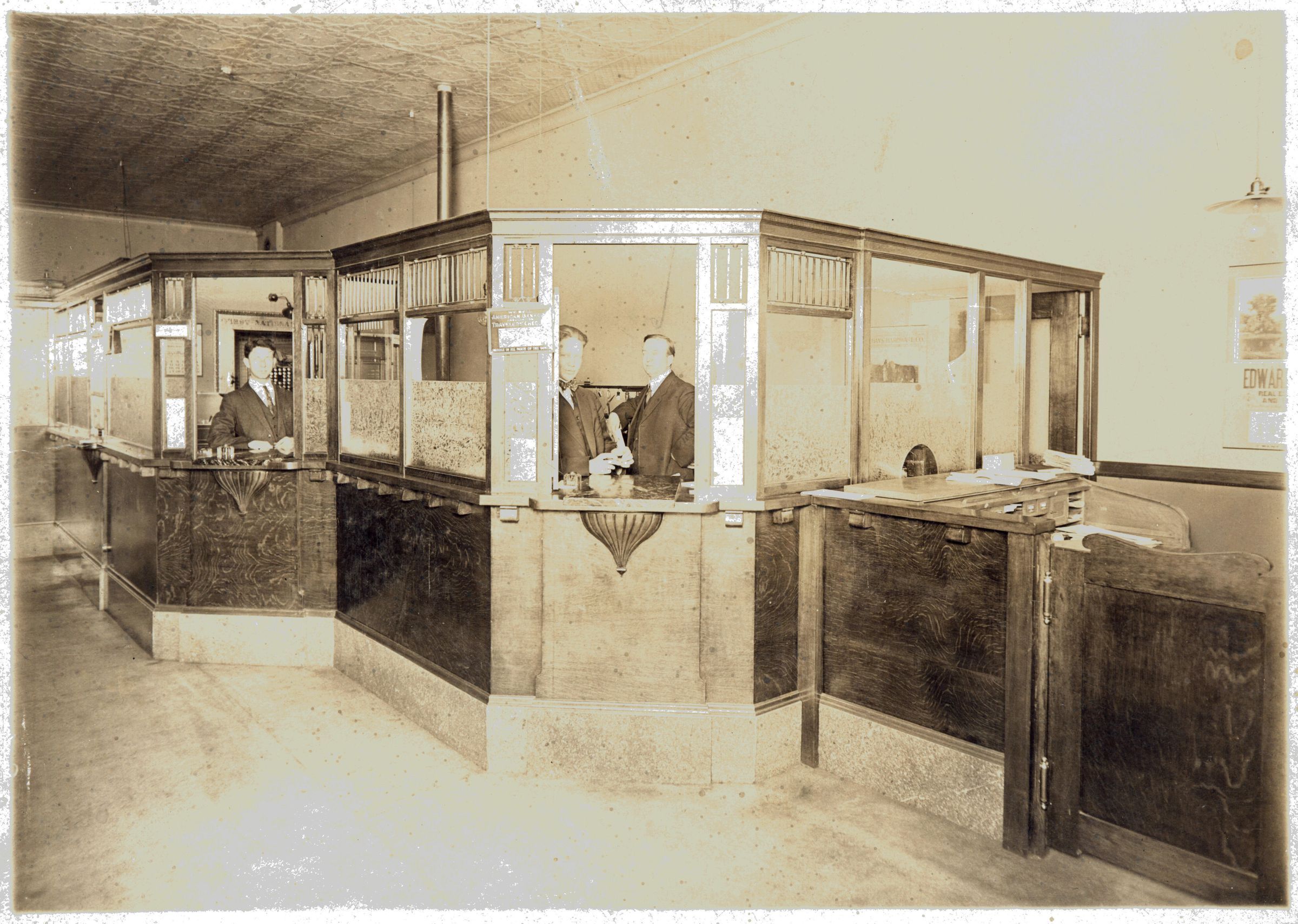 Interior shot of the First National Bank. Notice the tin ceiling. BDG100aCollection