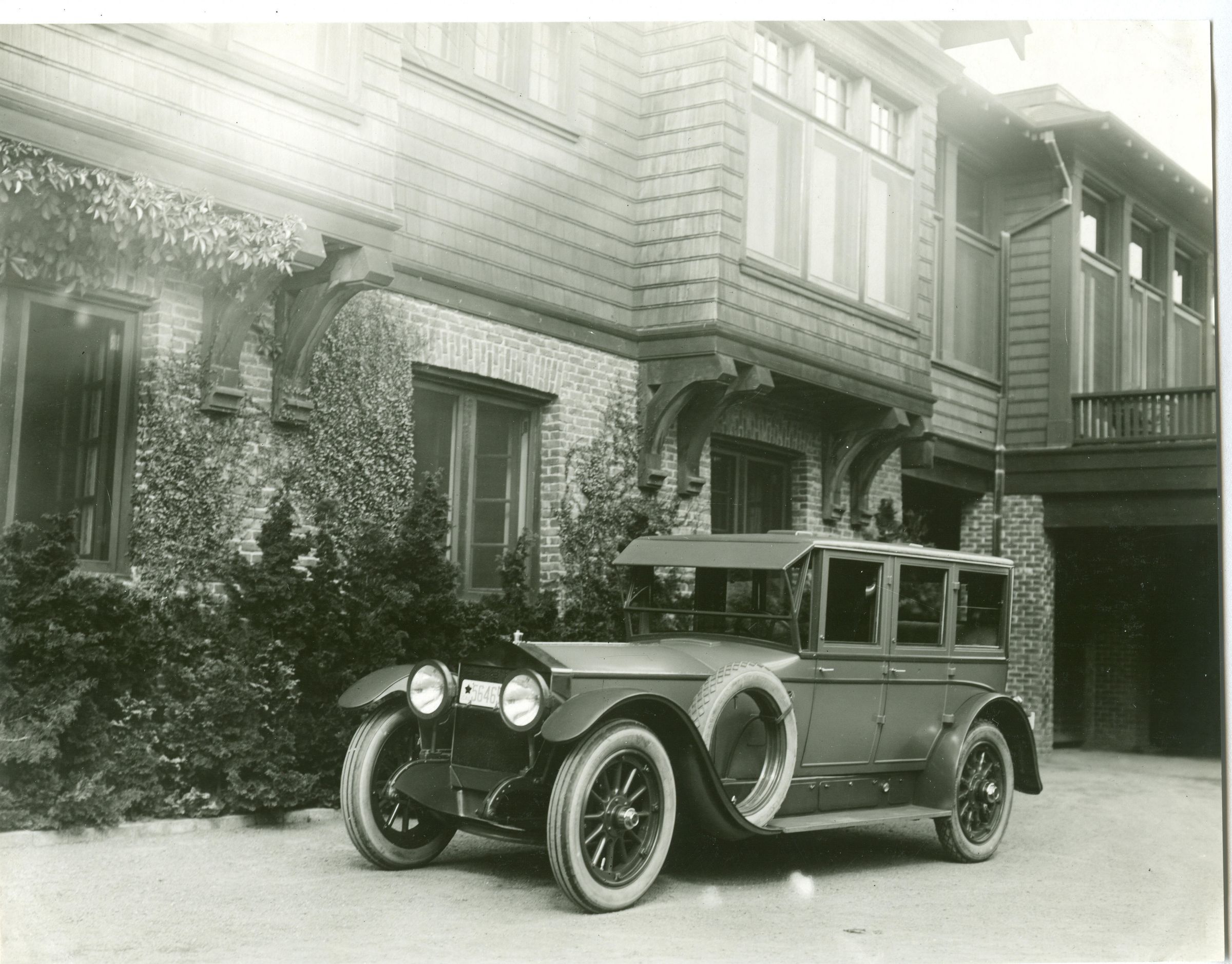 Dr. Harry L. Tevis' Locomobile is shown parked at Alma College. The Locomobile was one of the most expensive cars in America. It was built from 1899 - 1929. The car pictured here is perhaps a mid teens model. The Jesuit Order bought the Tevis estate in 1934. NVC035Collection