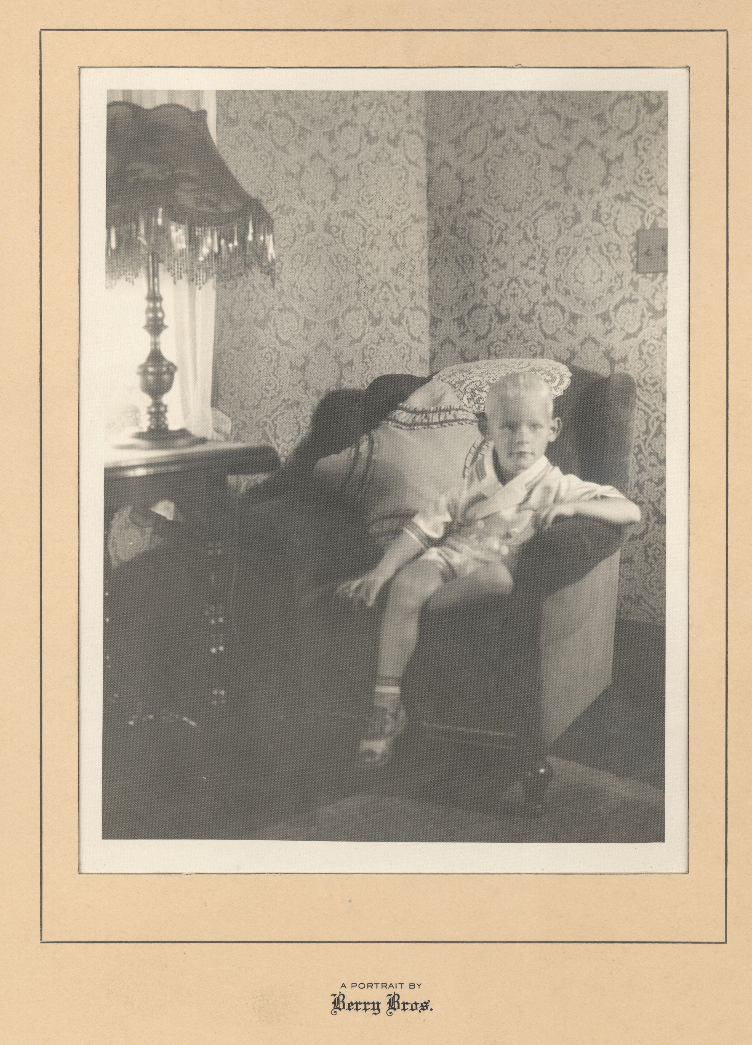 Interior of the Curtis home on Olive Street. Paul, Jr. is wearing a sailor suit. Note the period furnishings. CUR045Collection