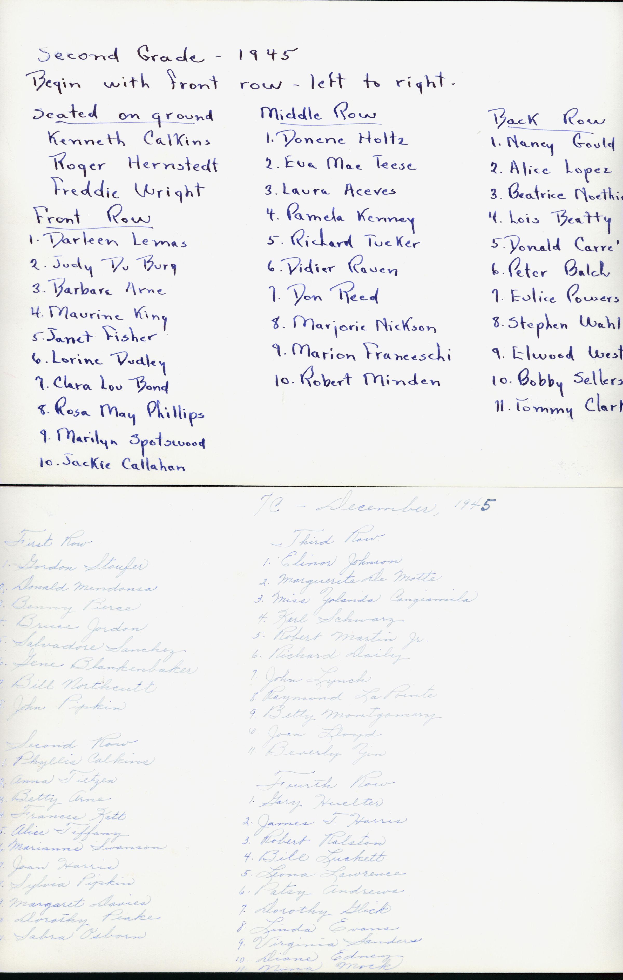 1945 Class 2 - no teacher listed, verso, University Avenue SchoolEntry/Object ID
