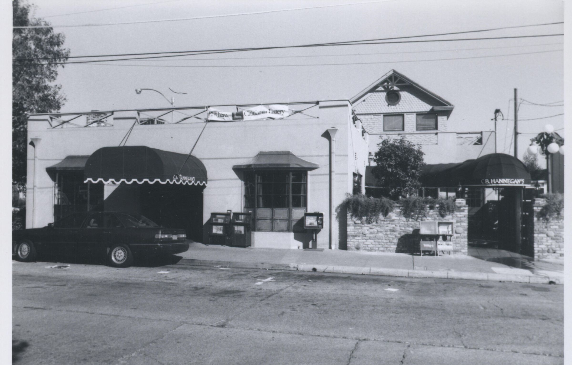 Built in 1890, the house in the rear was lifted and a new first floor added in 1940. The businesses located here included the Cranberry Tea Room and Cranberry Dress Shop. C. B. Hannegan's, a restaurant bar, opened in 1980. RES008Collection