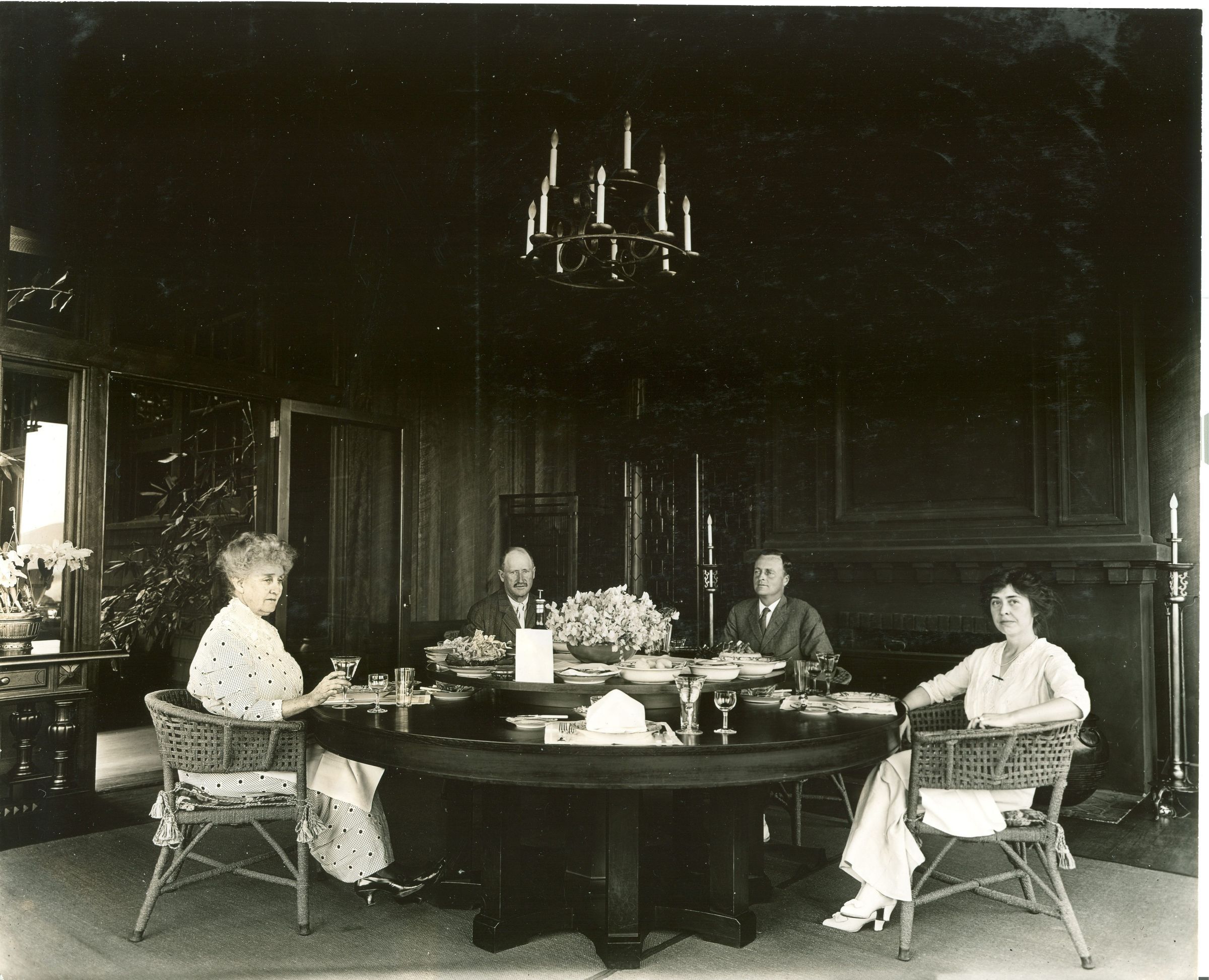 Outside Dining Room at Tevis Estate - but was actually indoors. Dr. Tevis is second from left. Mrs. Amsden is in the group. NVC004Collection