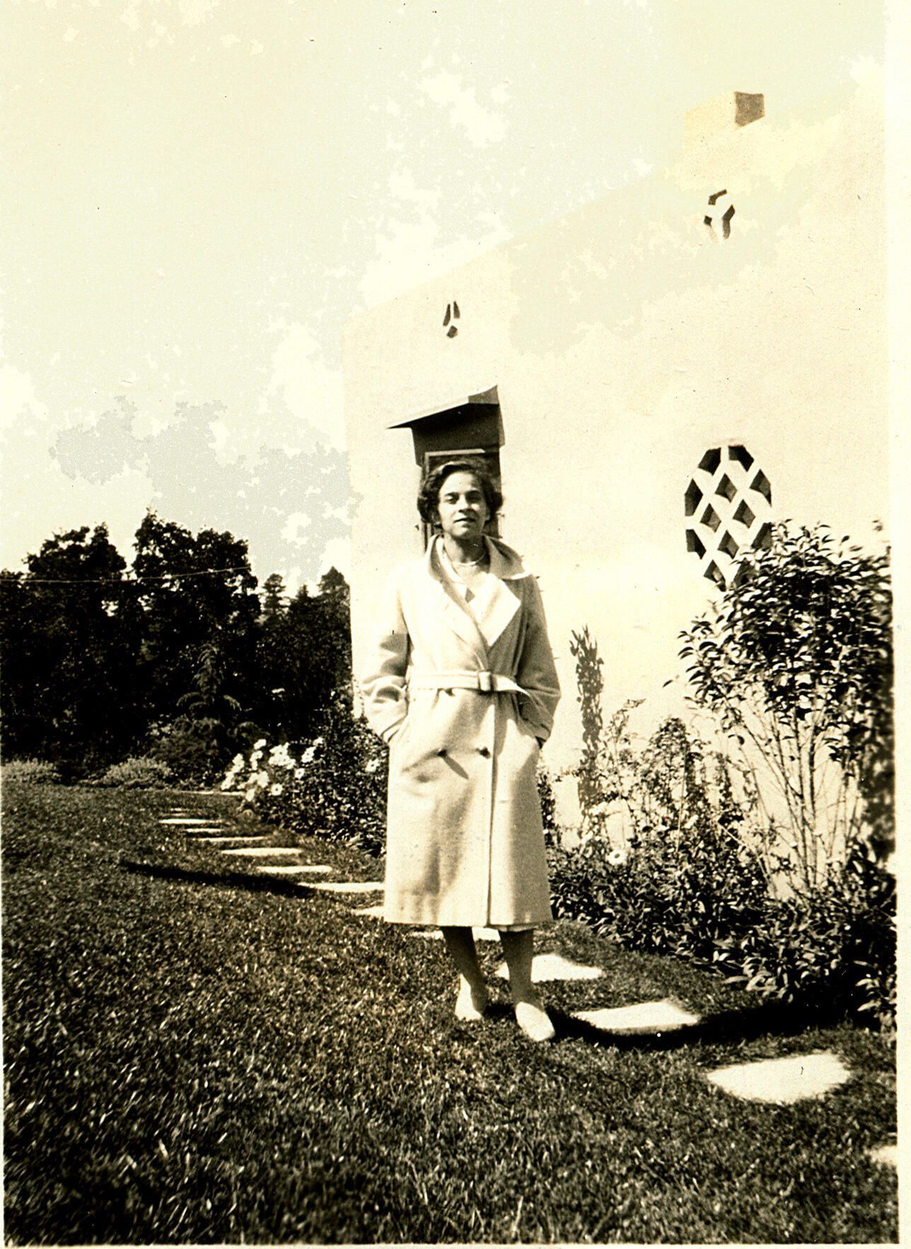 Beth Rondone arrived in Los Gatos in 1929, and spent her first month here living at "The Cats" estate of C.E.S. Wood and Sara Bard Field. She was soon hired as a "girl reporter" for the Los Gatos Mail-News after Col. Wood asked that favor of publisher Hyland Baggerly. She is pictured here at the home of Sissy Seaman in Los Gatos. RON001Collection