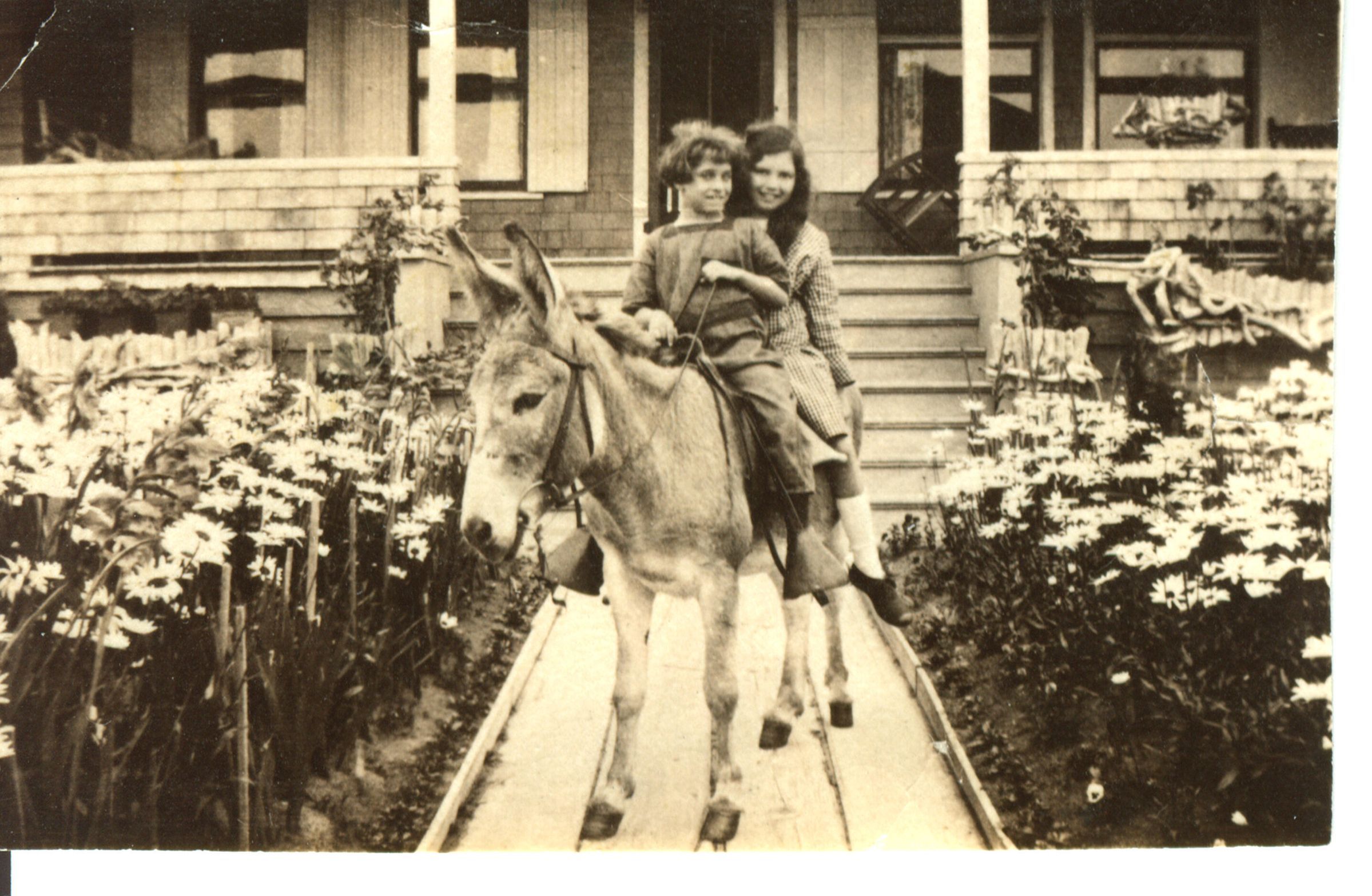 Beth Grover is pictured at about the age 7 in the Gearhart section of Portland. She is sitting at the front, her friend Jane Goodrow in back. RON009Collection