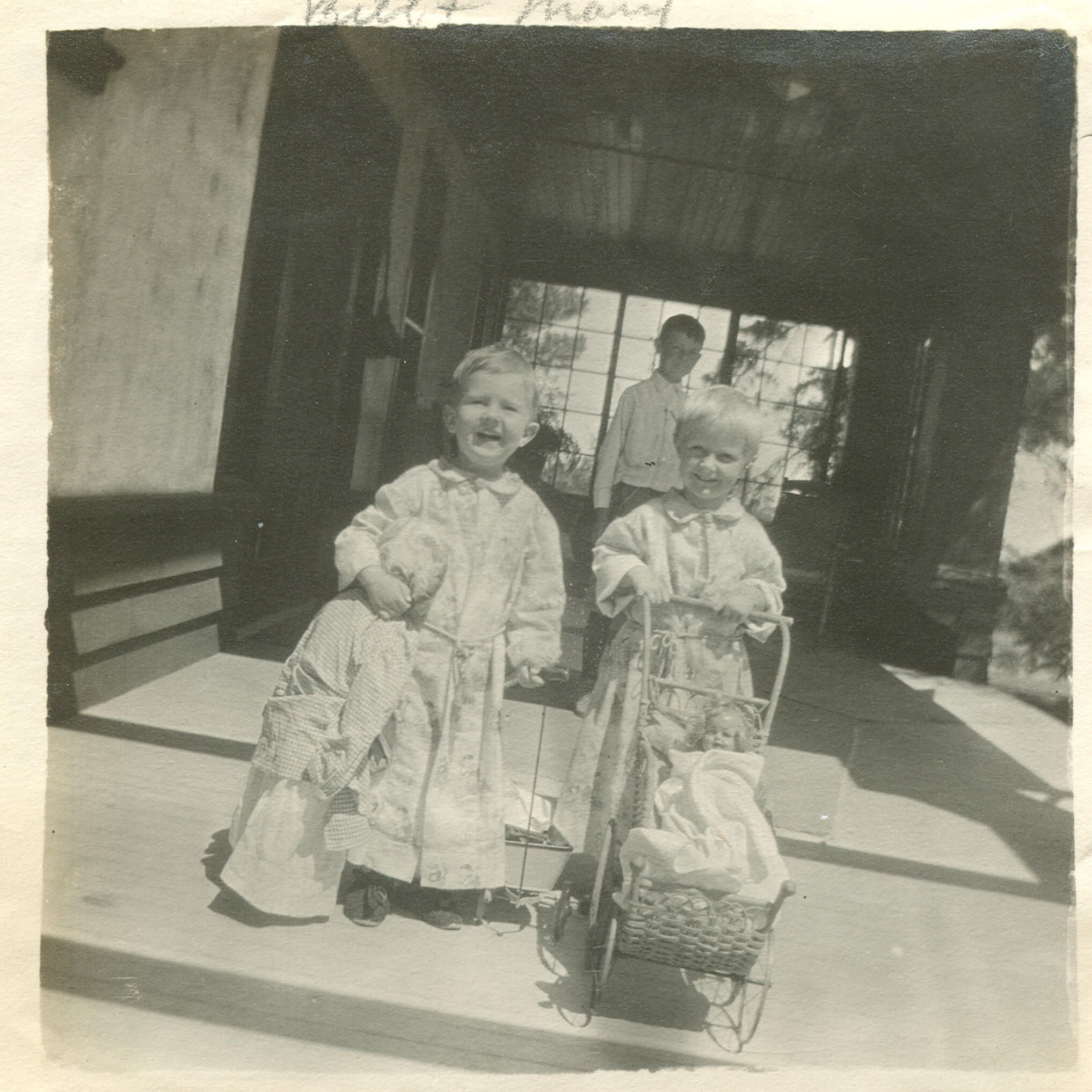 Bill and Mary Balch with Carl Balch in background. The children are shown on the front porch of their home at 327 Saratoga Avenue in about 1914. BAL020Collection