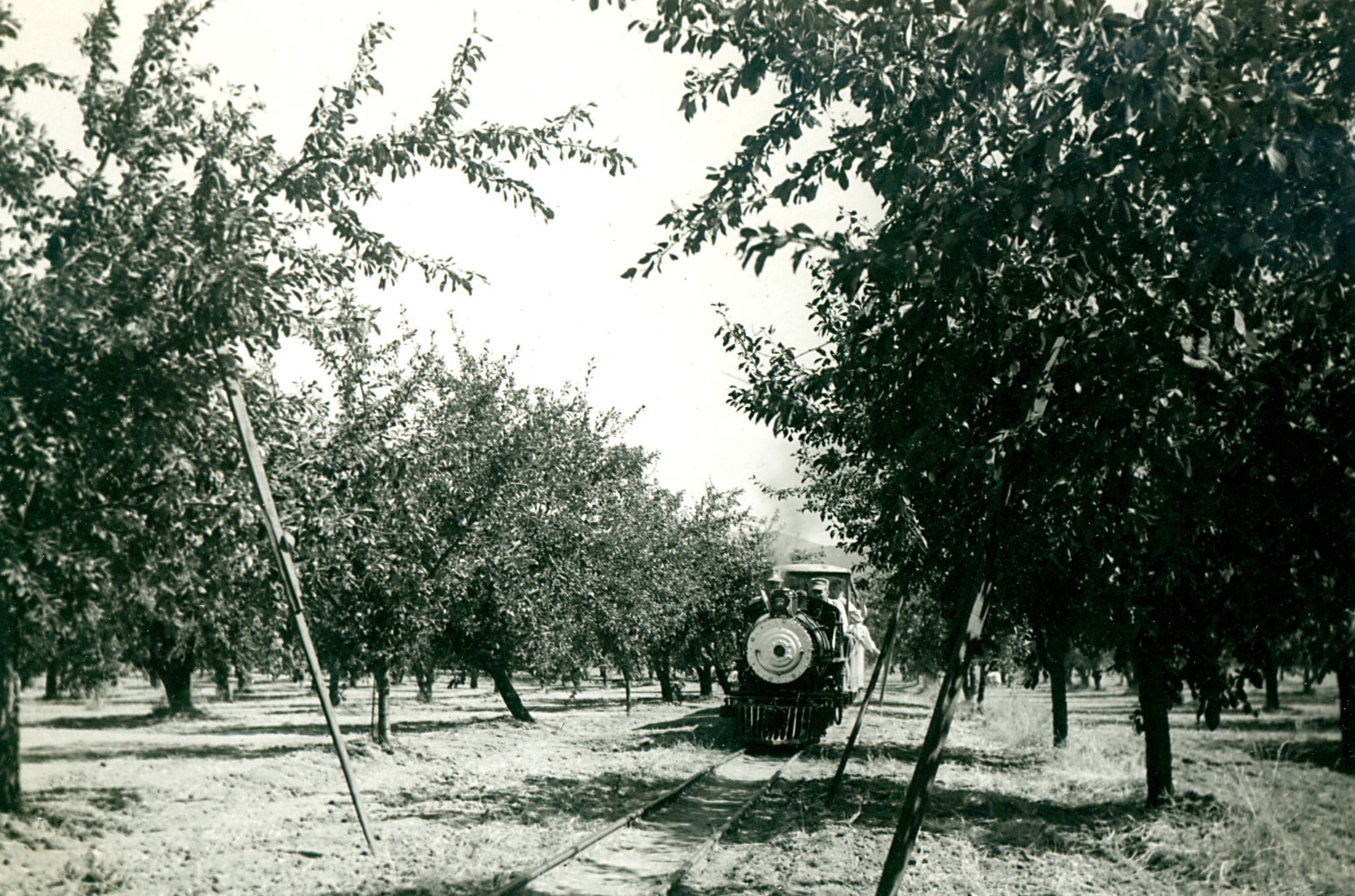 Billy Jones' orchard made a beautiful setting for his little railroad. BER038Collection
