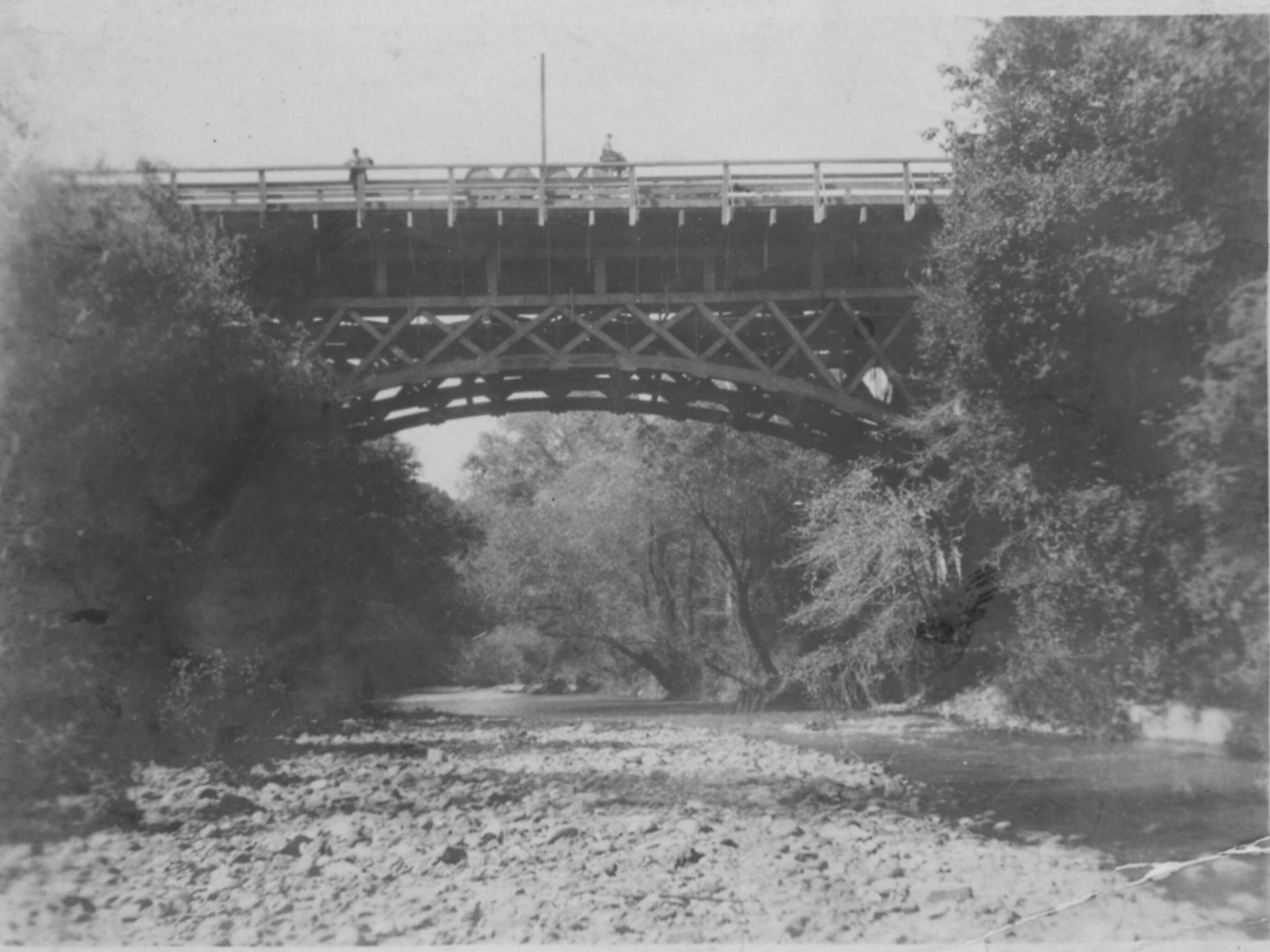 This wooden Main Street bridge opened in Los Gatos in 1882. Unfortunately, it was the site of a lynching on Sunday afternoon, June 17, 1883, when Incarnacion Garcia, a young Californio, was hung from the bridge by a vigilance committee, seeking "even and exact justice, without cost to the county." CON012Collection