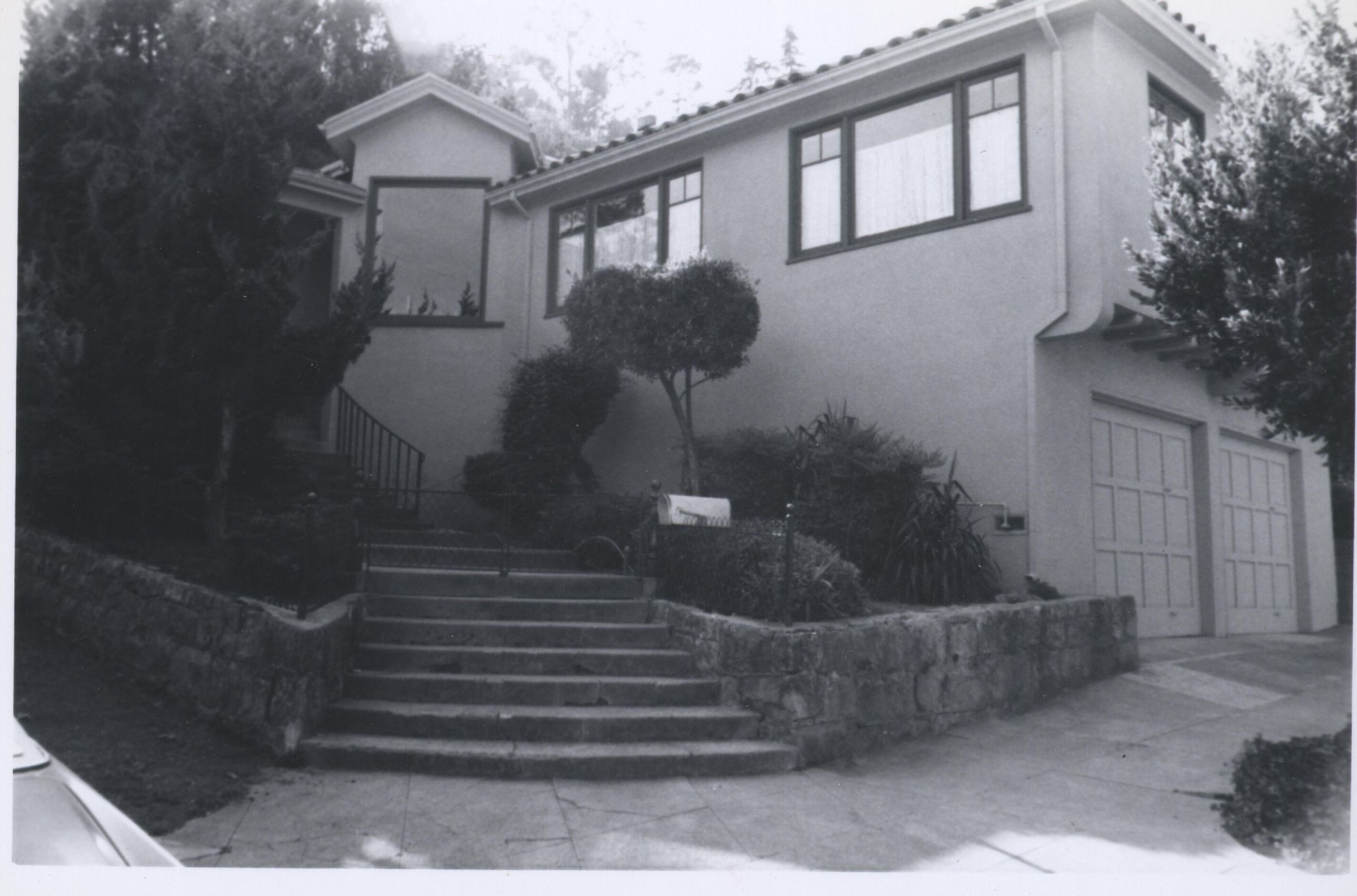 Built possibly pre-1900 by J. L. B. Manning, carpenter, and Samuel Lord. In 1934-35 two front bedrooms, 2 baths and a garage were added. The contractor was Anton Jensen. In the late 1950s retaining walls of sandstone from the Greystone quarry on Almaden Rd. were added. Apparently this dwelling was one of the first built (perhaps for speculation or as rentals) in the Broadway area. Numbers 85, 89, and 93 had identical floor plans. In 1890 the house was owned by John Teed. Owners in 1921 were William and Pearl Griffith. Pearl Griffith was John Teed's niece. Residents included Hans E. and Sadie Nielsen, founder of Meadow Gold Creamery, in 1934, and Mrs. Cora S. Muir, a member of the Muir Woods family, in 1946. In 1948, the property was purchased by Edward and Lois Steffani, and in 1967 by Ellis and Margaret Fenley. In 1970 the owners were Patrick and LaRue Boner. The house received a Bellringer plaque in 1976. RES024Collection