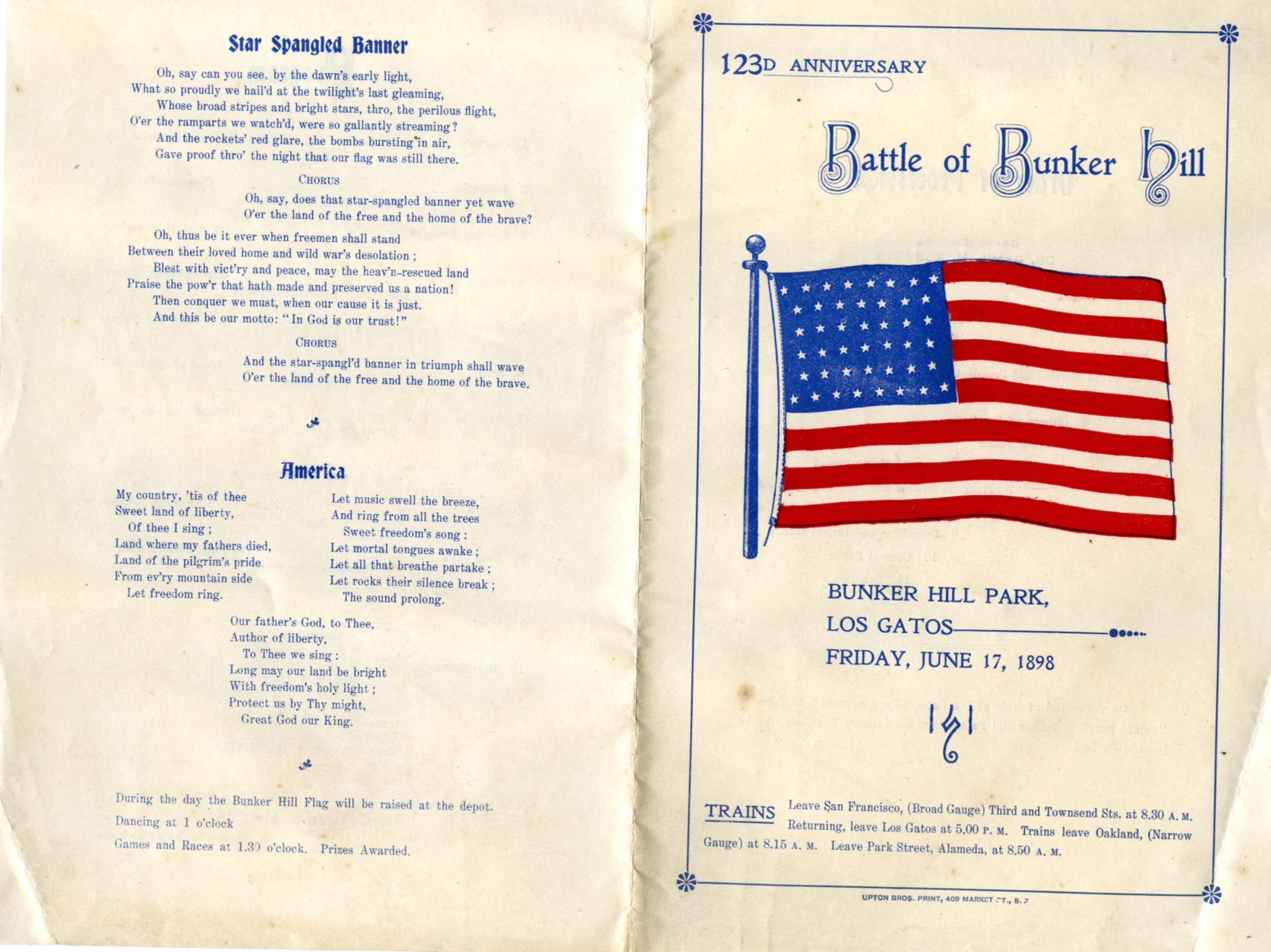 Program for the 123rd anniversary of the Battle of Bunker Hill at Bunker Hill Park. BH012ACollection