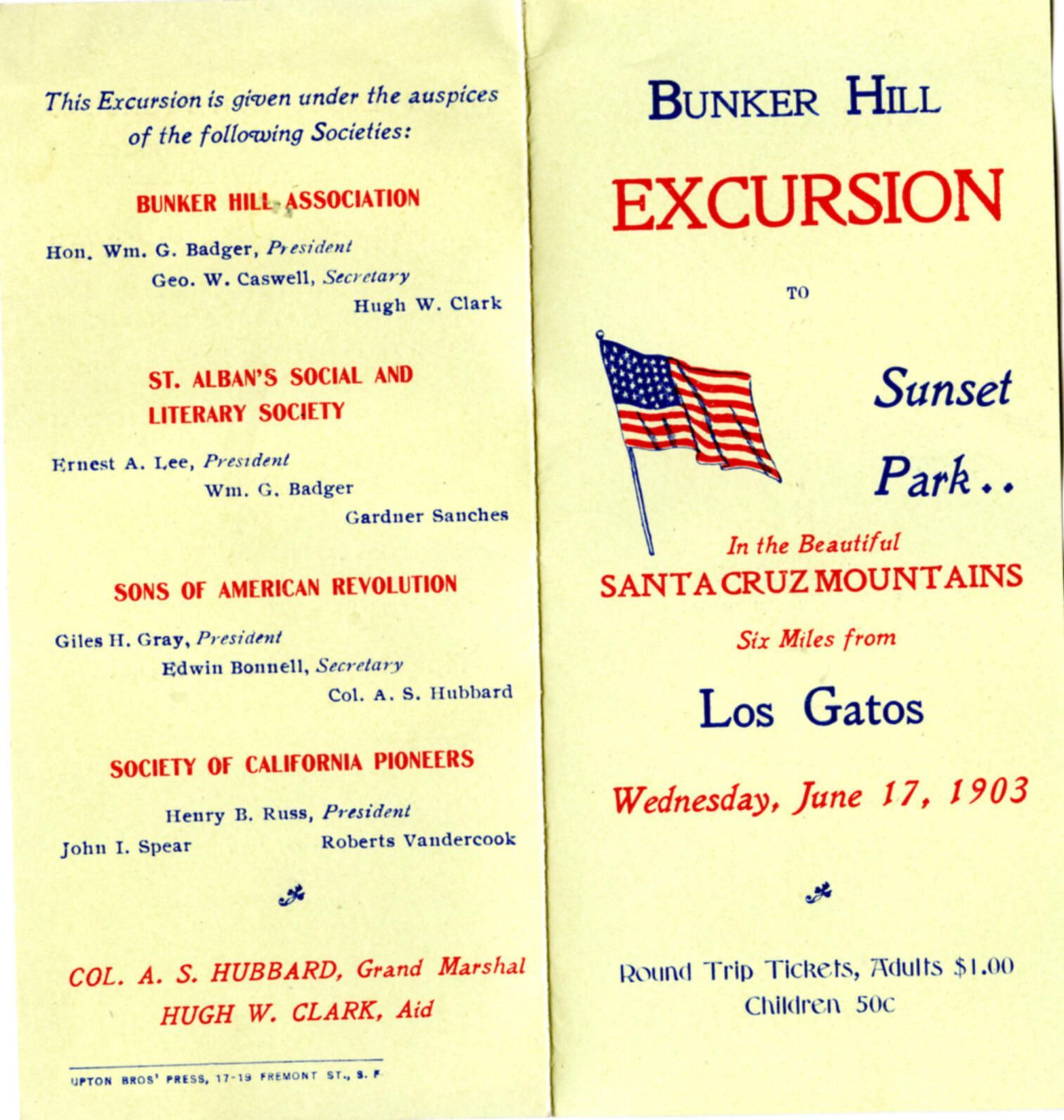 Program for the Bunker Hill Excursion to Sunset Park. BH016ACollection