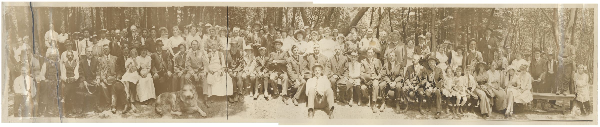 Men, women and children at a celebration at Bunker Hill park. Many men are wearing medals which might mean this is a Memorial Day event. PE055Collection