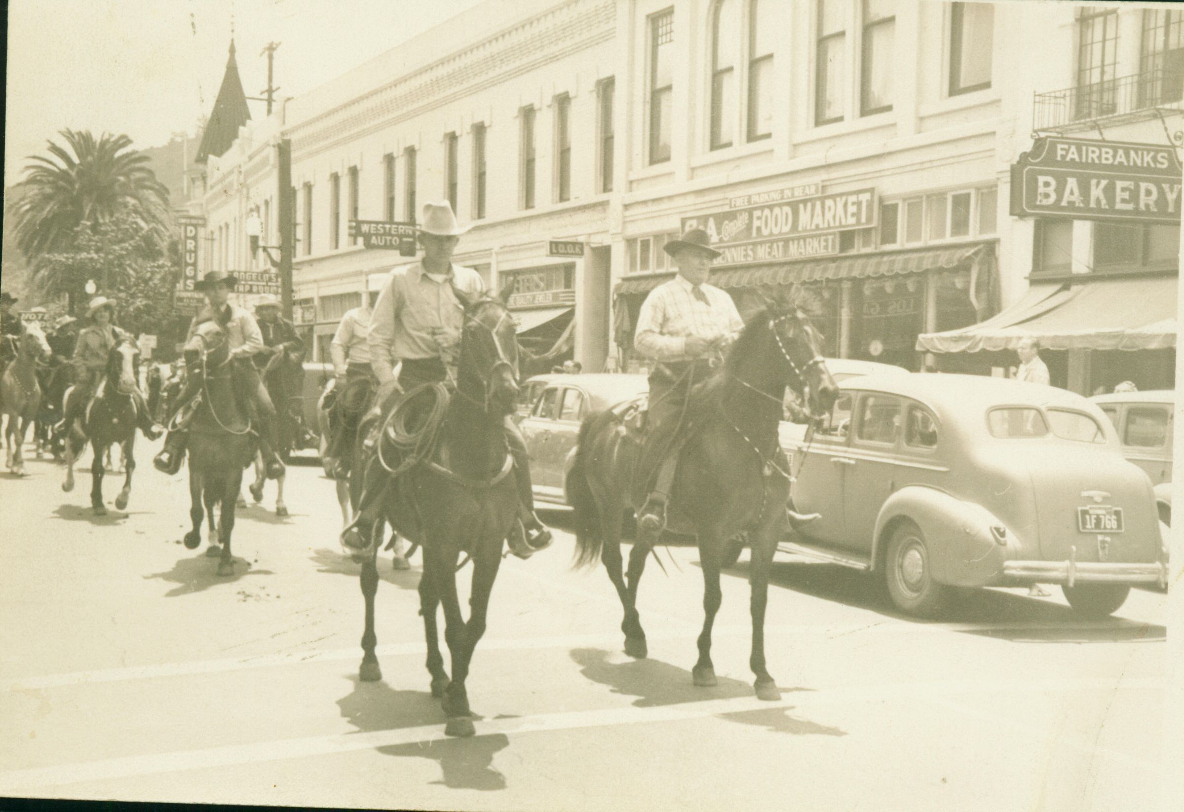 Horse enthusiasts organized the Gymkhana Association in 1940 for the purpose of sharing their interests in owning and training horses. An arena was set up along Los Gatos Creek for horse shows and competitions. Los Gatos parades during this period featured up to 200 horses. FAR045Collection