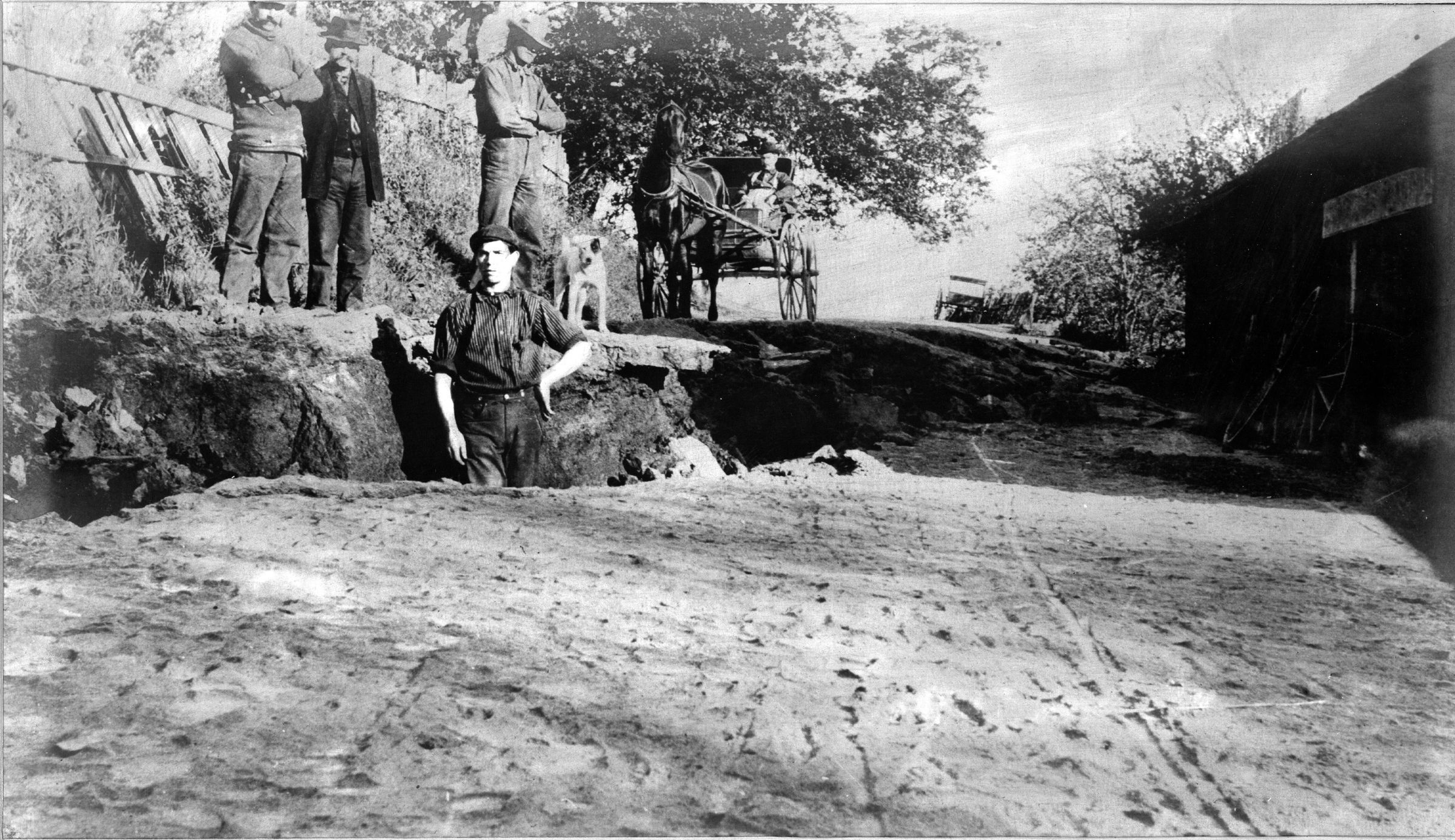 Earthquake damage near Burrell in the Santa Cruz mountains caused by the earthquake of April 18, 1906. The town of Los Gatos suffered some earthquake damage in 1906, but damage in the surrounding mountains was much more severe. HC086Collection