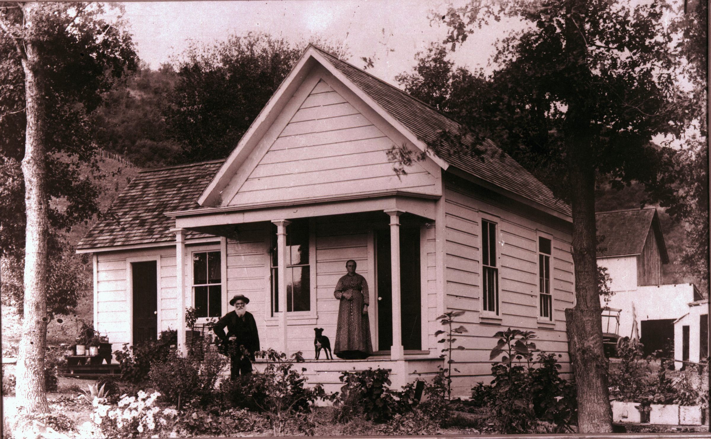 James Kennedy, who appears in this picture with his wife, built the toll house in 1867. Two days after the company's toll road charter expired on November 17, 1877, angry teamsters dragged the toll gate to the creek and dumped it in. This incident was dramatized in the Los Gatos "Trail Days" celebration of 1940, held to celebrate the completion of the Los Gatos - Santa Cruz highway into town. HC011Collection