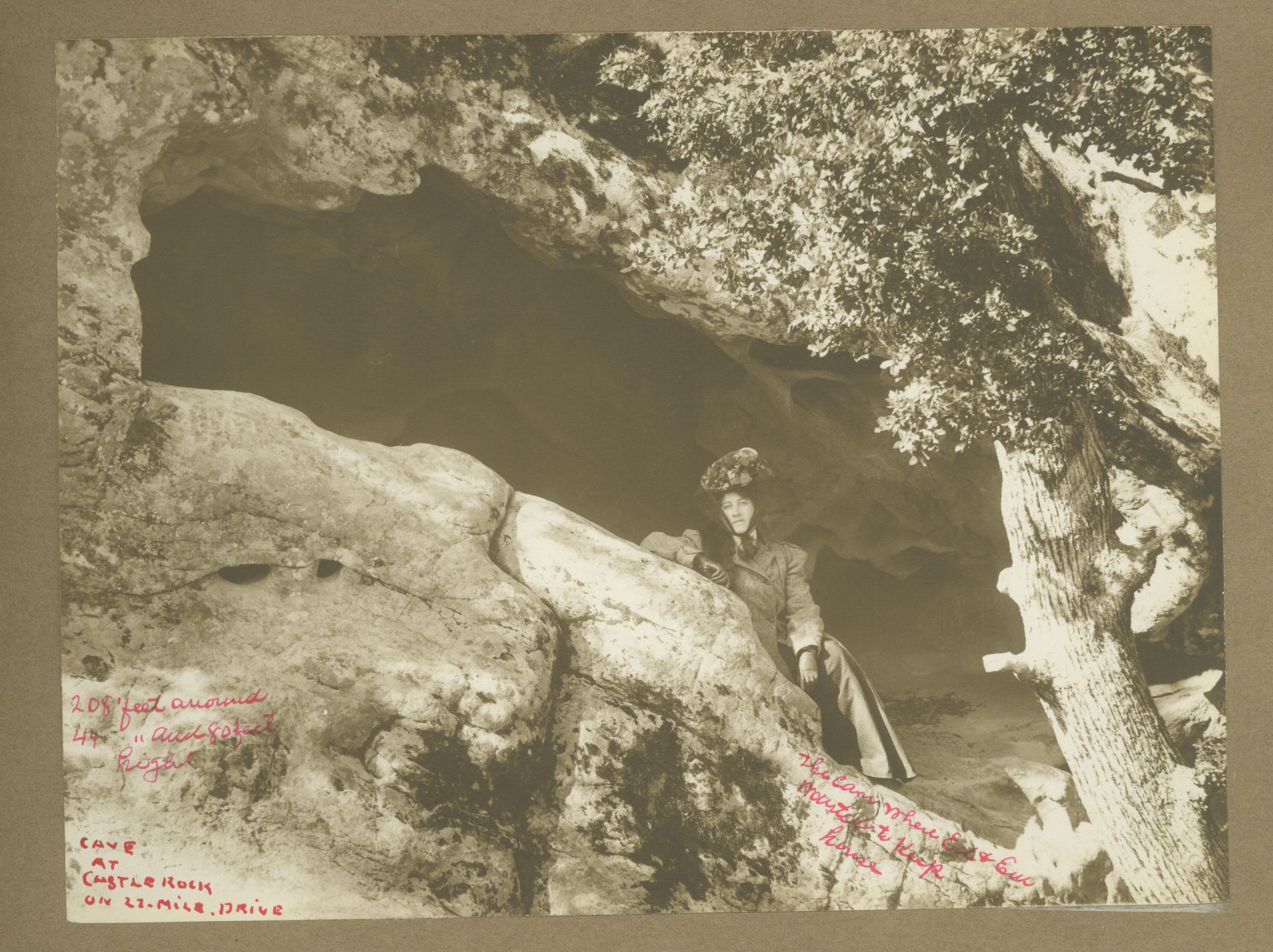 Wagner photo album photograph of cave at Castle Rock on the 27 mile drive through the Santa Cruz Mountains. WAG032Collection