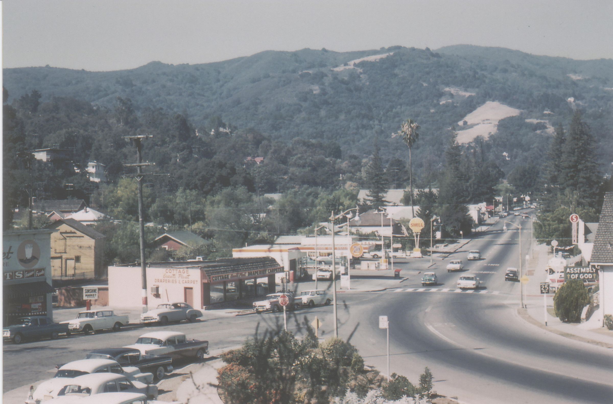 East Main Street view toward Town Hall. Sunshine Market and Cottage Draperies and Carpets were located between Jackson and Alpine. EJ025Collection