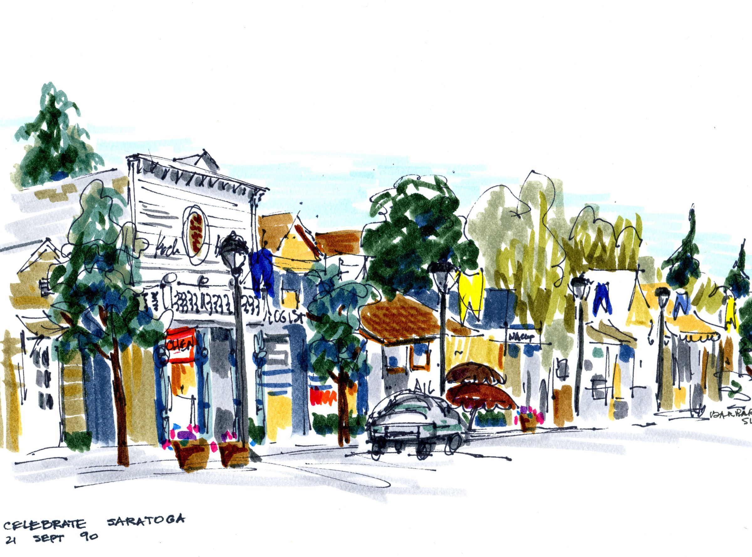 The heart of Saratoga Village, Big Basin Way, is decorated for their annual festival in the fall.Type of Painting