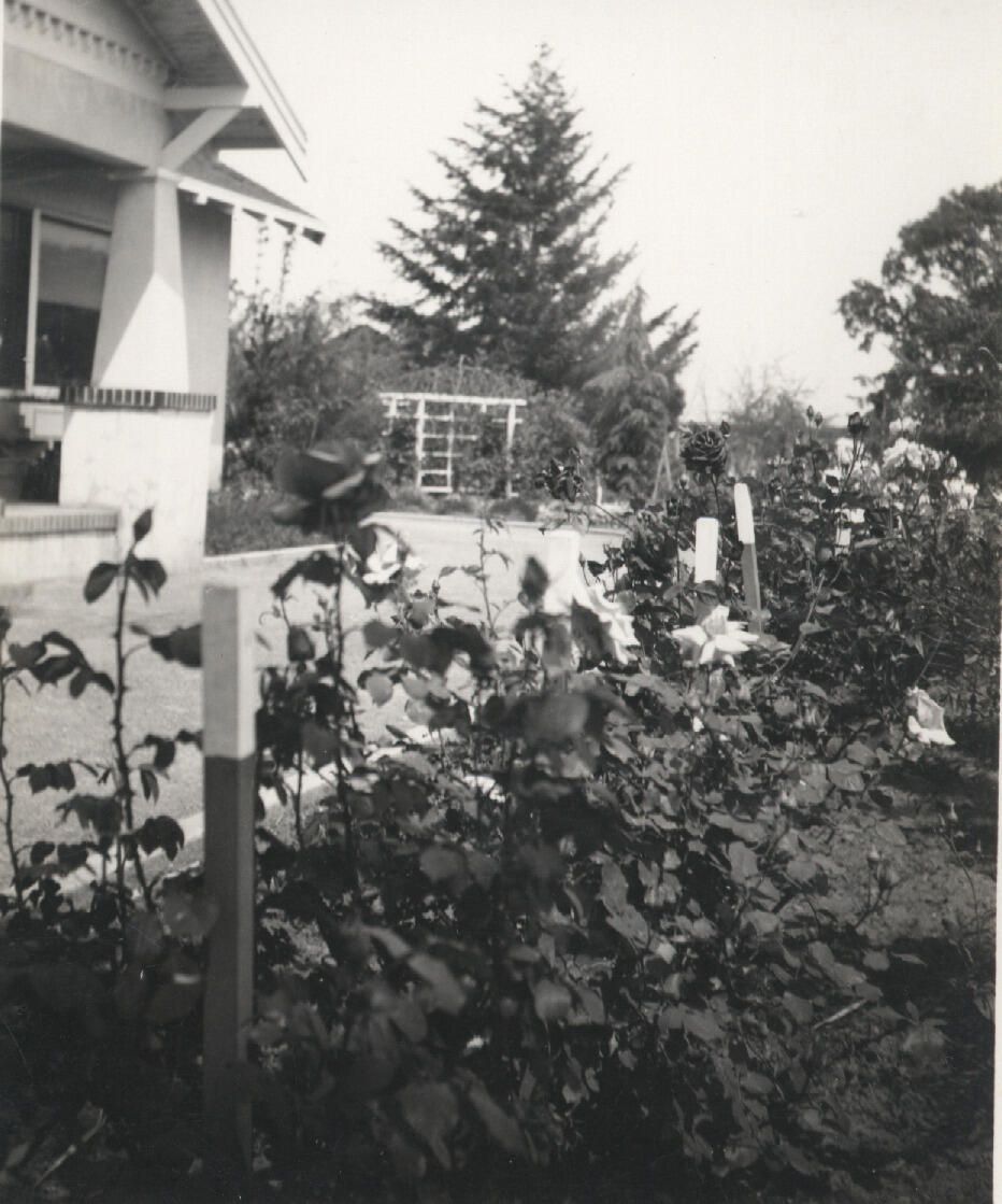 A view of the southeast corner of the house and the roses in 1938. CLK031Collection