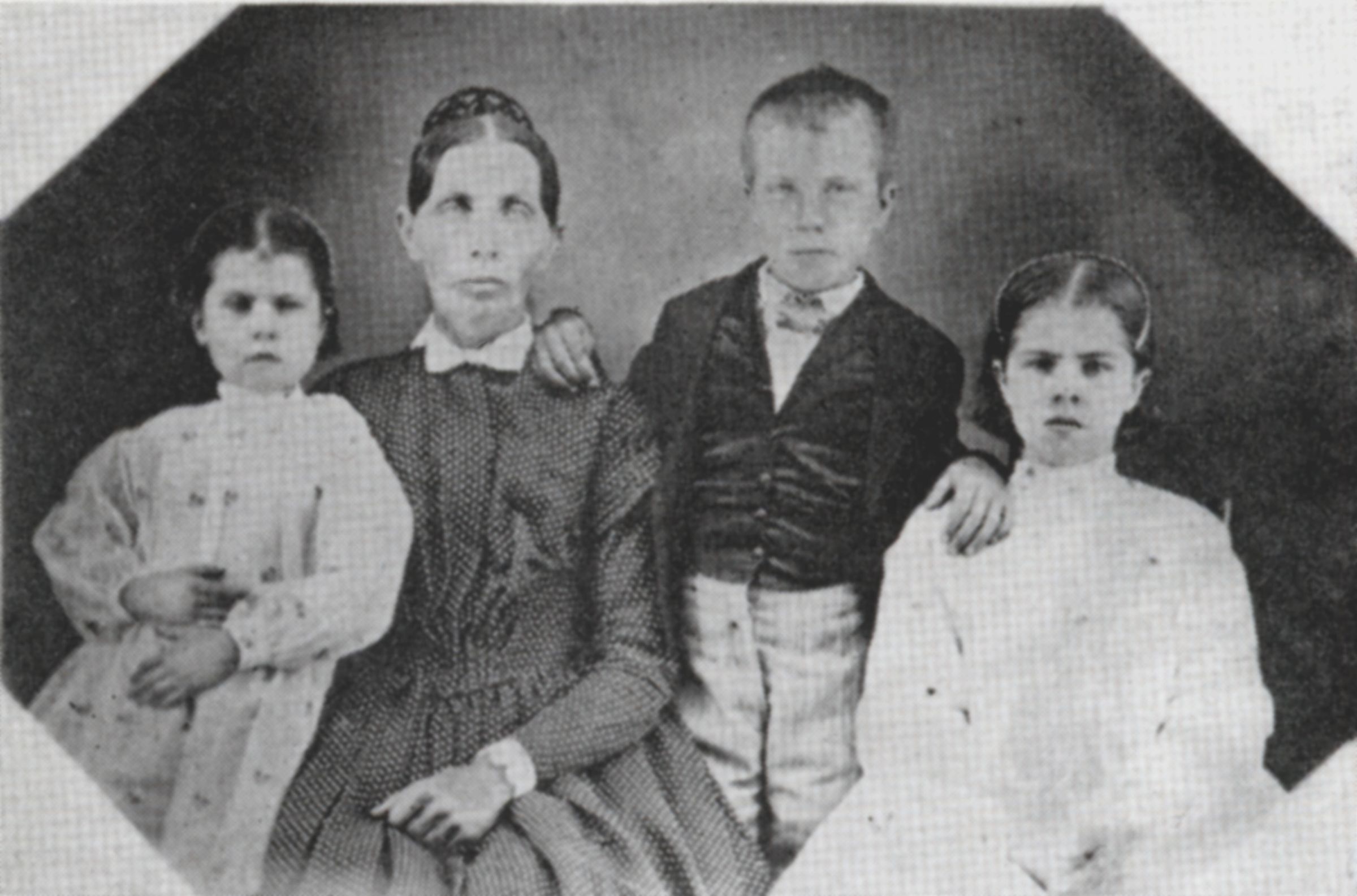 Lyman Burrell (1801-1884) and Clarissa Wright Burrell(1805-1857) were married in 1839 and had three children. Despite the challenging life she led as a California pioneer, Clarissa managed to write a series of letters which now serve as a valuable primary source of information about her life and times. She tells of her 103-day trip to California around Cape Horn with her children, of life on the mountain top, and of her husband's encounter with a grizzly bear. When she died she was buried on the mountain ranch. Her son, James Birney Burrell (1840-1921), pictured here with his mother and sisters Clara (left) and Martha (right), was one of Santa Clara Valley's pioneer fruit growers. BU001Collection