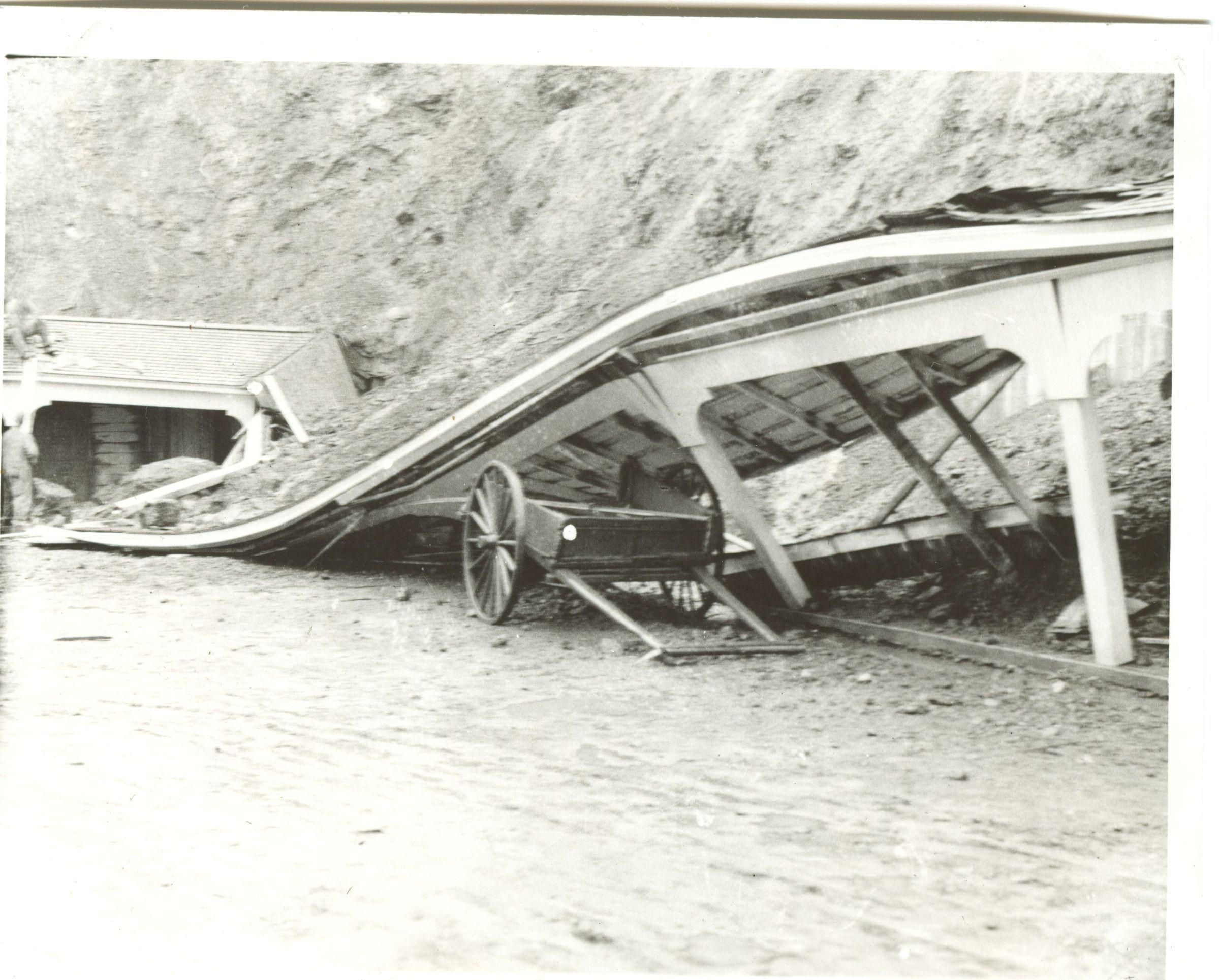 In the early morning of December 24, 1932, heavy rain started a landslide which demolished over half the recently erected cloister adjoining the novices' wing. The cloister was finished by the novices and juniors after they spent over two years removing several hundred tons of earth. The December downpour also washed away 150 feet of the road to the Della Stroda shrine. NVC051Collection