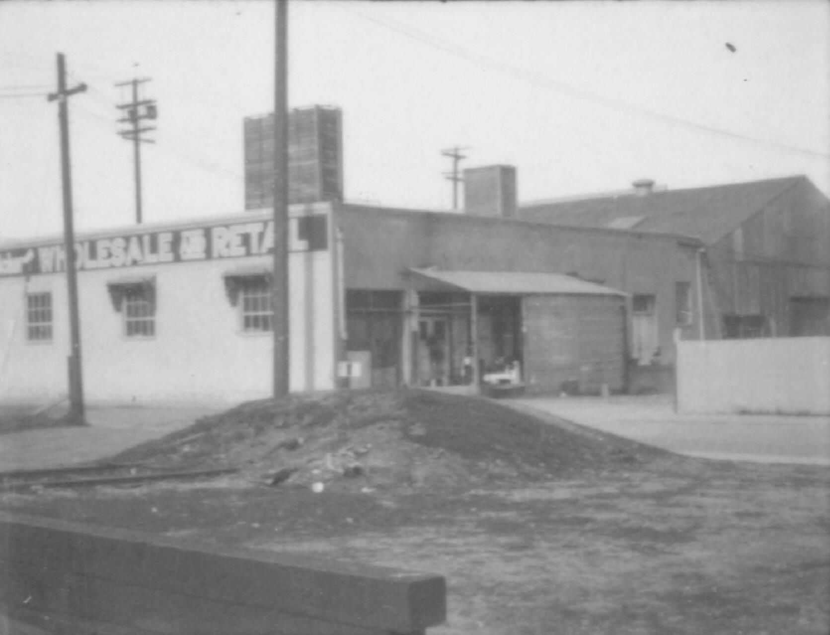 View of rear access to store that backs onto Southern Pacific Railway tracks.