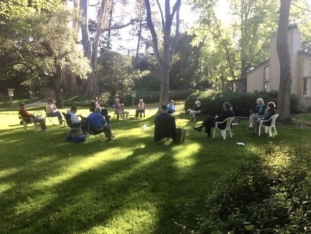 "My fellow 65+ year old neighbors and I were beginning to feel restless a couple weeks ago, so we’ve been dragging our own chairs, bringing our own drink, and sitting around in a big circle on one of our grassy areas on Sunday afternoons at five. We’ve been visiting by Zoom every Friday morning, too, but seeing one another in person is much better. And besides that, somebody always manages to surprise the rest of us with a homemade snack. One person brought in the little wagon in these photos. This first treat was placed on the ground, in the middle of the circle, along with a bottle of spray disinfectant which we sprayed our hands with before helping ourselves. We’ve gotten a little more sophisticated since then, and someone puts a table in the middle to hold the ever more abundant food. Trouble is, half the people are so hard of hearing that there is a lot of shouting going on across the wide expanse, and we have to call for order once in a while and “Raise your hand” if you have something you want to say to everyone!Collection
