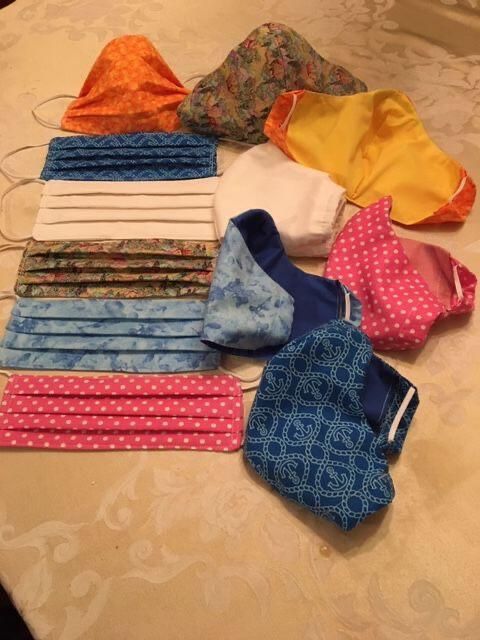 Jeanette Rapp made many homemade masks: "Early on, an Occupational Therapist daughter-in-law in Portland was distressed that she had only one face mask and was re-using it countless times as she made house calls to elderly patients. That got me started and I’ve gotten back to it several times because of more requests from others. Even though the supply seems to have caught up with the demand, many people like the colorful homemade masks better than the plain commercial ones. I’ve recruited friends to pitch in and presently there are five of us trying to complete 100 more this week."Collection