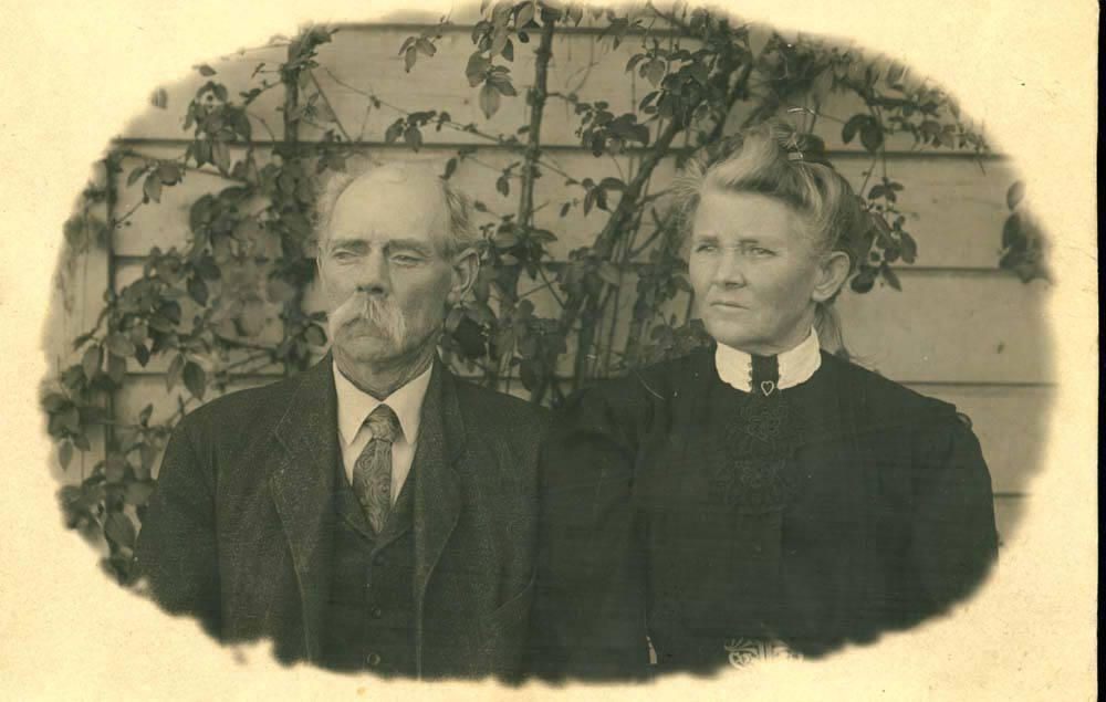 Oval portrait of Daniel and Sarah McCoy, early Los Gatos settlers. "Dan" McCoy (1843 - 1927) was born in Bloomfield, Iowa, on April 13, 1843, a son of Joseph and Nancy (Pelly) McCoy, both natives of Virginia. Joseph McCoy went to Iowa and purchased 1000 acres of land, which he farmed successfully. In 1858, with his family, he joined a train of emigrants and started across the plains to California. According to the "History of Merced County" by John Outcalt, published in 1925, "there were sixty persons in the company, bringing 2,000 head of loose stock. They lost 1,000 head in the first Indian encounter. Eight persons were killed by the Indians during six hard fights; one woman and three little girls were taken prisoners and were never heard of again." By the time the group finally reached California, they had suffered "indescribable hardships," many of the company dying of starvation. Joseph McCoy and his family settled near Visalia and he became a rancher and teamster. Dan McCoy began work at an early age, herding sheep and then driving a ten-horse team for his father. In 1862 Dan settled in Los Gatos, where he engaged in hauling lumber from the Santa Cruz Mountains until 1913. On November 12, 1871, Dan married Miss Sarah Amanda Crews, who was born in Harrison County, Missouri on March 31, 1853. They became parents of 10 children. In 1913 Dan and Sarah moved to Merced, where they lived on a 20-acre ranch. Mcc002Collection