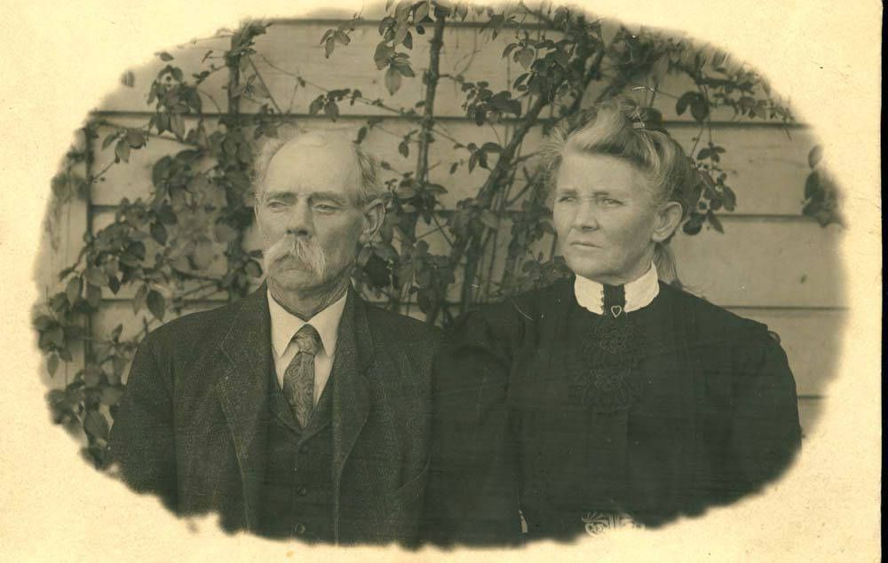 Oval portrait of Daniel and Sarah McCoy, early Los Gatos settlers. "Dan" McCoy (1843 - 1927) was born in Bloomfield, Iowa, on April 13, 1843, a son of Joseph and Nancy (Pelly) McCoy, both natives of Virginia. Joseph McCoy went to Iowa and purchased 1000 acres of land, which he farmed successfully. In 1858, with his family, he joined a train of emigrants and started across the plains to California. According to the "History of Merced County" by John Outcalt, published in 1925, "there were sixty persons in the company, bringing 2,000 head of loose stock. They lost 1,000 head in the first Indian encounter. Eight persons were killed by the Indians during six hard fights; one woman and three little girls were taken prisoners and were never heard of again." By the time the group finally reached California, they had suffered "indescribable hardships," many of the company dying of starvation. Joseph McCoy and his family settled near Visalia and he became a rancher and teamster. Dan McCoy began work at an early age, herding sheep and then driving a ten-horse team for his father. In 1862 Dan settled in Los Gatos, where he engaged in hauling lumber from the Santa Cruz Mountains until 1913. On November 12, 1871, Dan married Miss Sarah Amanda Crews, who was born in Harrison County, Missouri on March 31, 1853. They became parents of 10 children. In 1913 Dan and Sarah moved to Merced, where they lived on a 20-acre ranch. MCC002Collection
