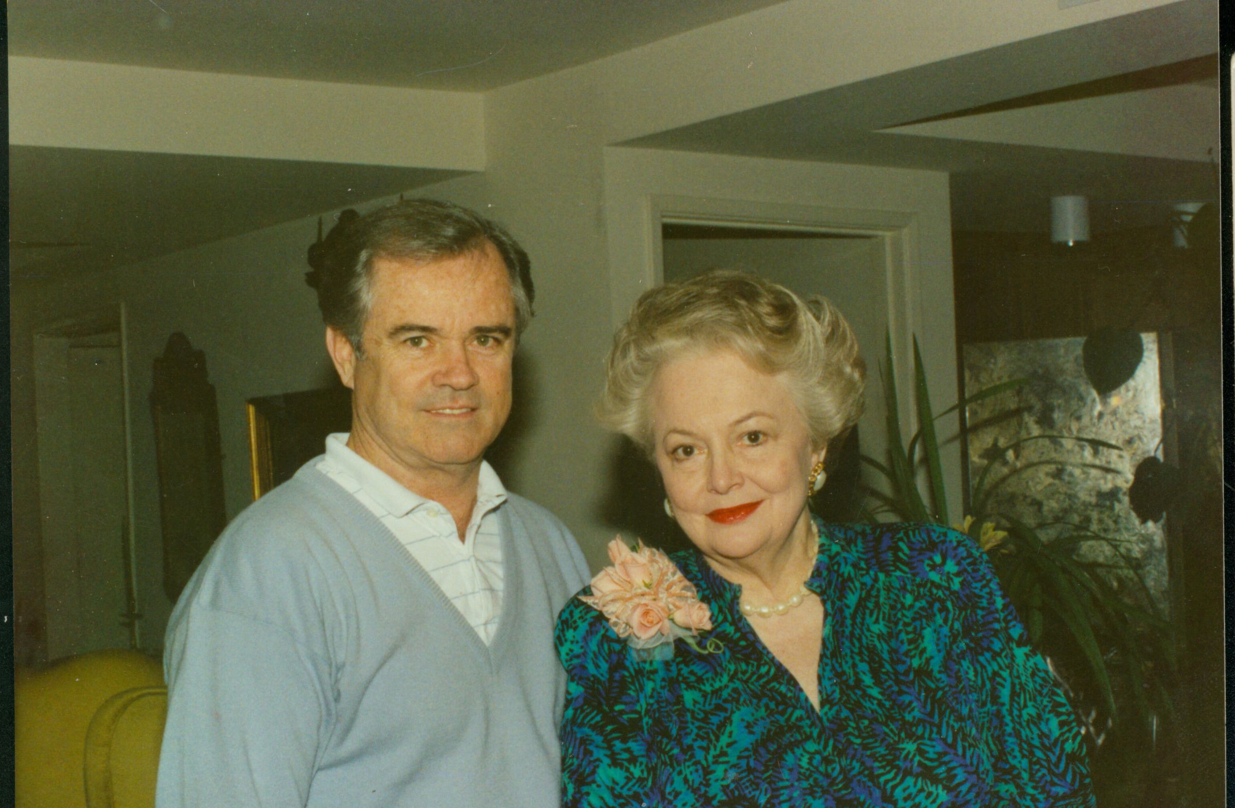 Don Scott, drama and English teacher at Los Gatos High School, and Olivia de Haviland. BA157Collection