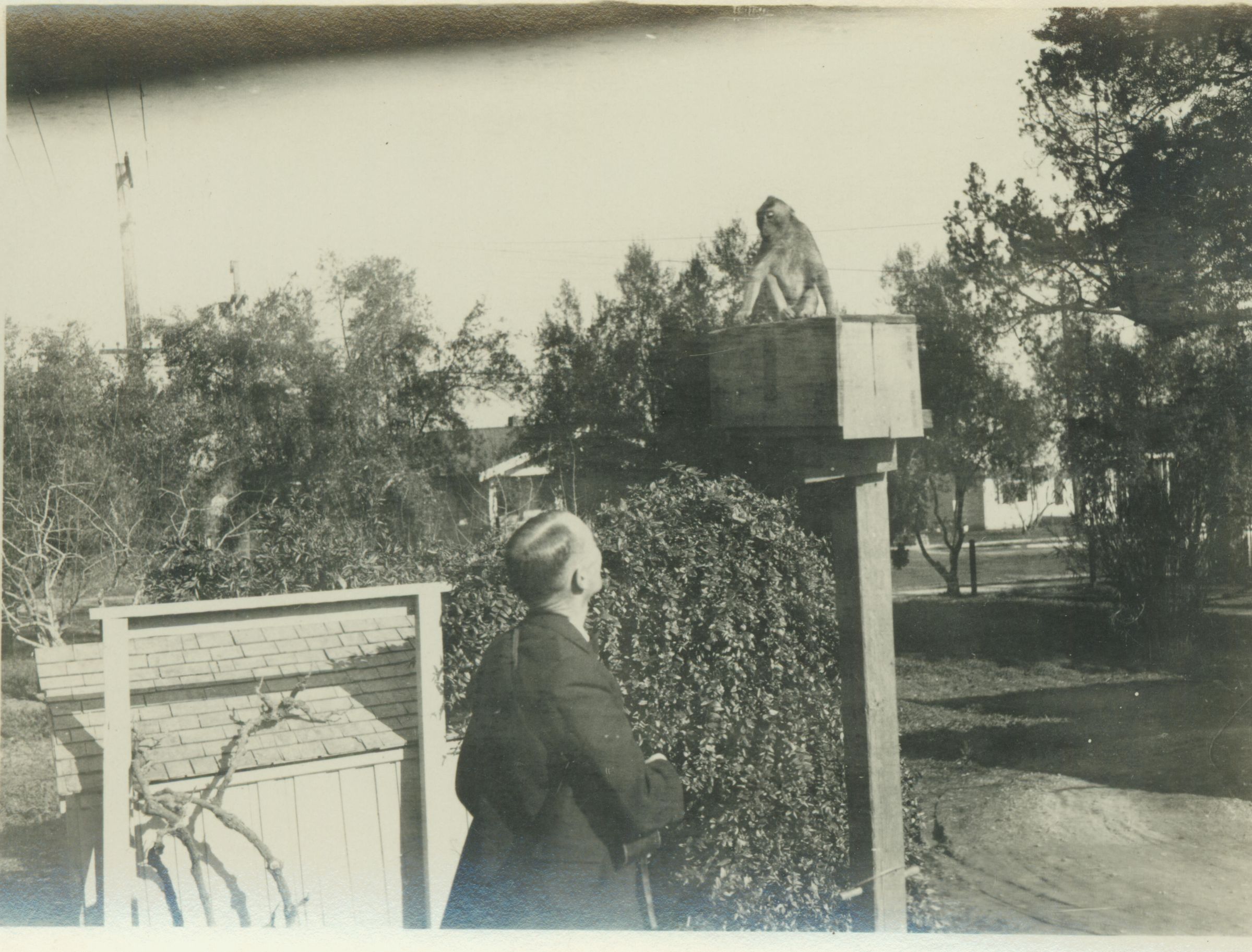 Dean Balch with his pet monkey, Morocco, at the family property on Massol Ave. Saratoga Ave is seen in the background. BBC027Collection