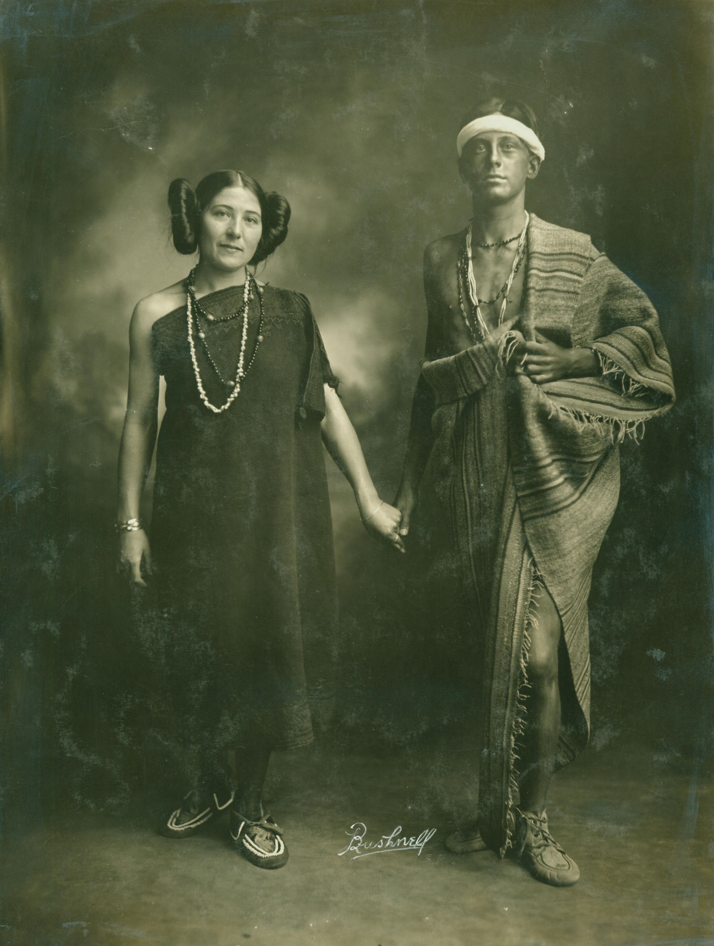Photograph of Delia Puccinelli and Hobart Furman in Native American garb, portraying young lovers. TR013Collection