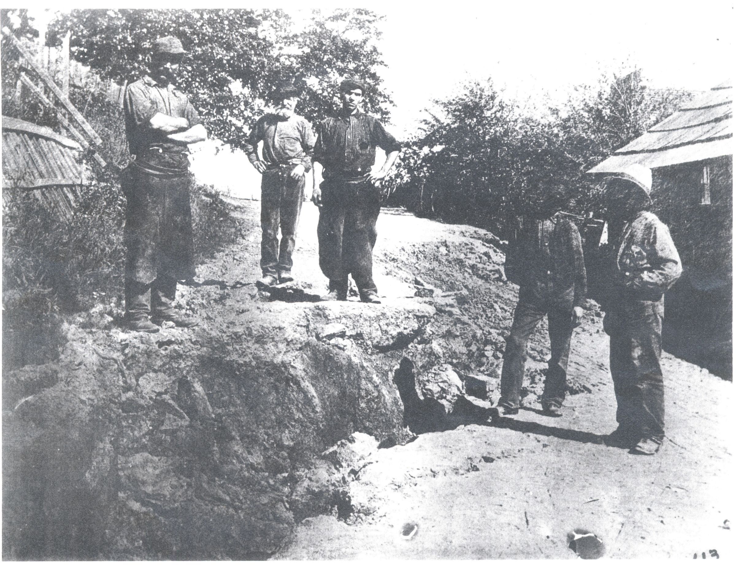 A photo showing a fissure caused by the earthquake of 1906. WIL014Collection