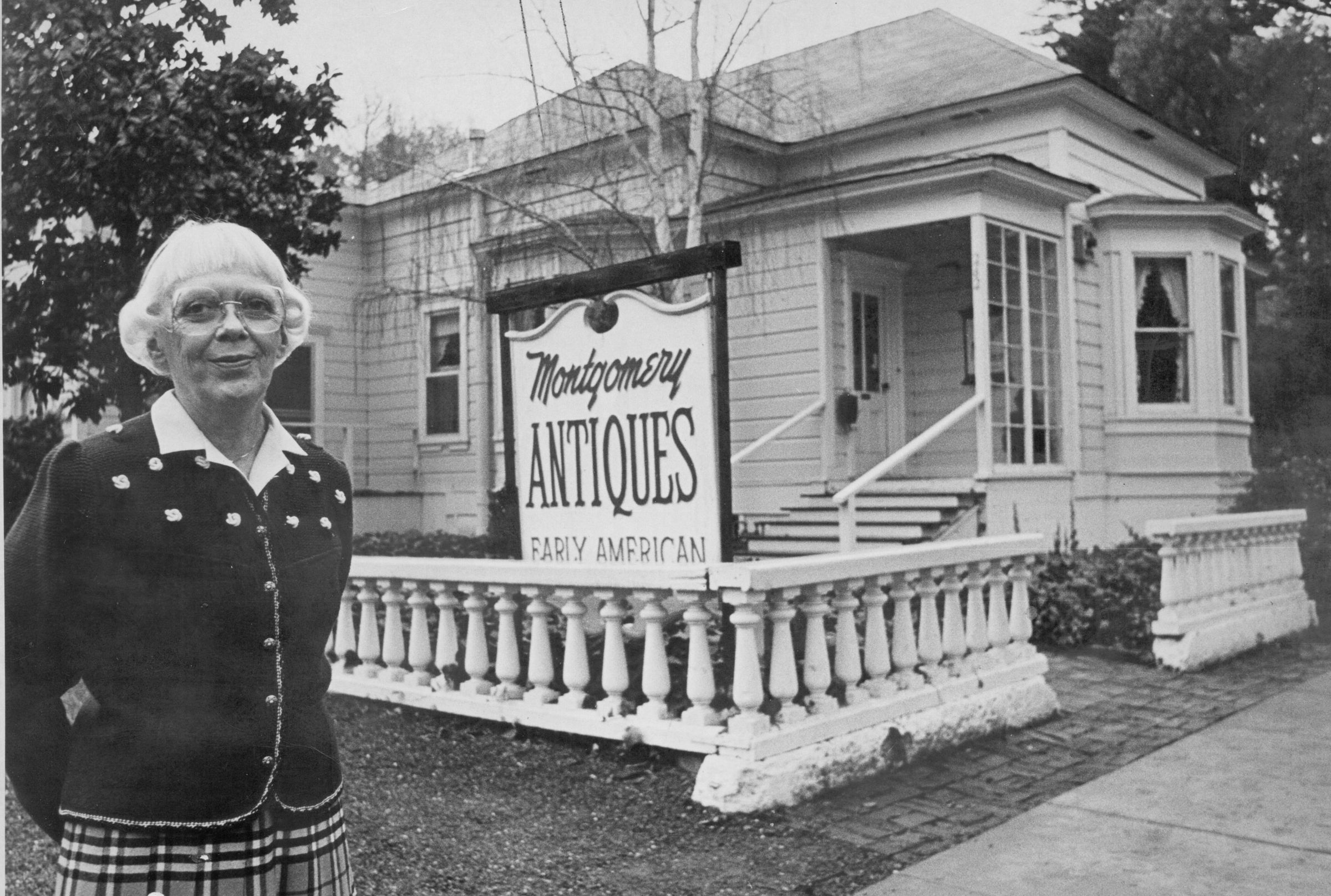 Jean Montgomery in front of her business at 262 E. Main Street. She lived in the back. BA152Collection