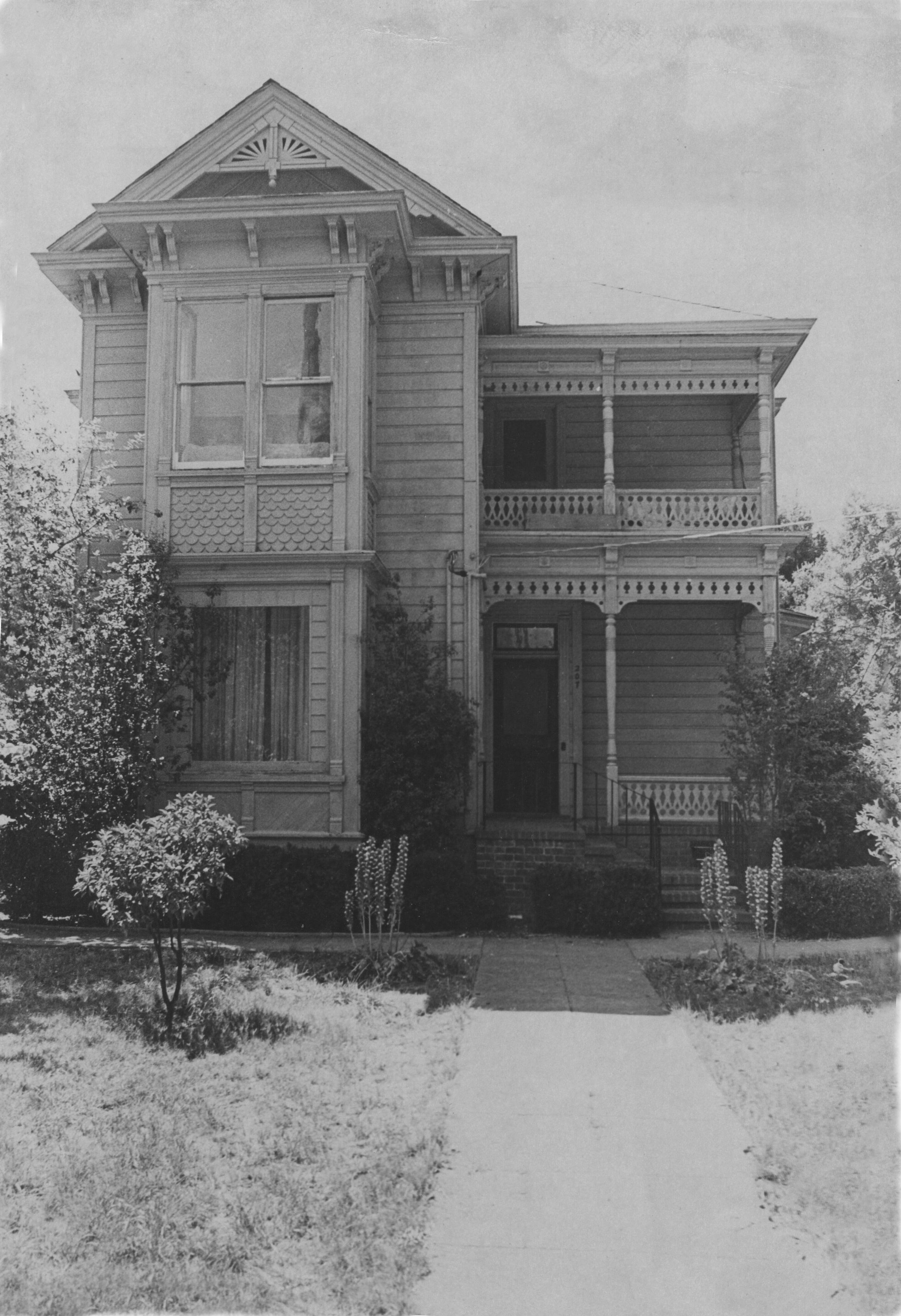 Built in 1890, this Eastlake Italianate was the original home of D. P. Simon. The property remained in the Simon family until as late as 1915. Subsequent owners were: 1935--Mrs. Ethel B. Crawford; 1943--Mrs. H. C. Sprague; 1965--Mrs. Patricia Wiley; 1976--Mr. Wm. C. Lyons and Michael F. McGuire; then Stuart Richel and in 1984--Barry Solloway. Property is approximately 1/2 acre with fruit trees and two palm trees in front. The house has been awarded a Bellringer plaque. RES138Collection