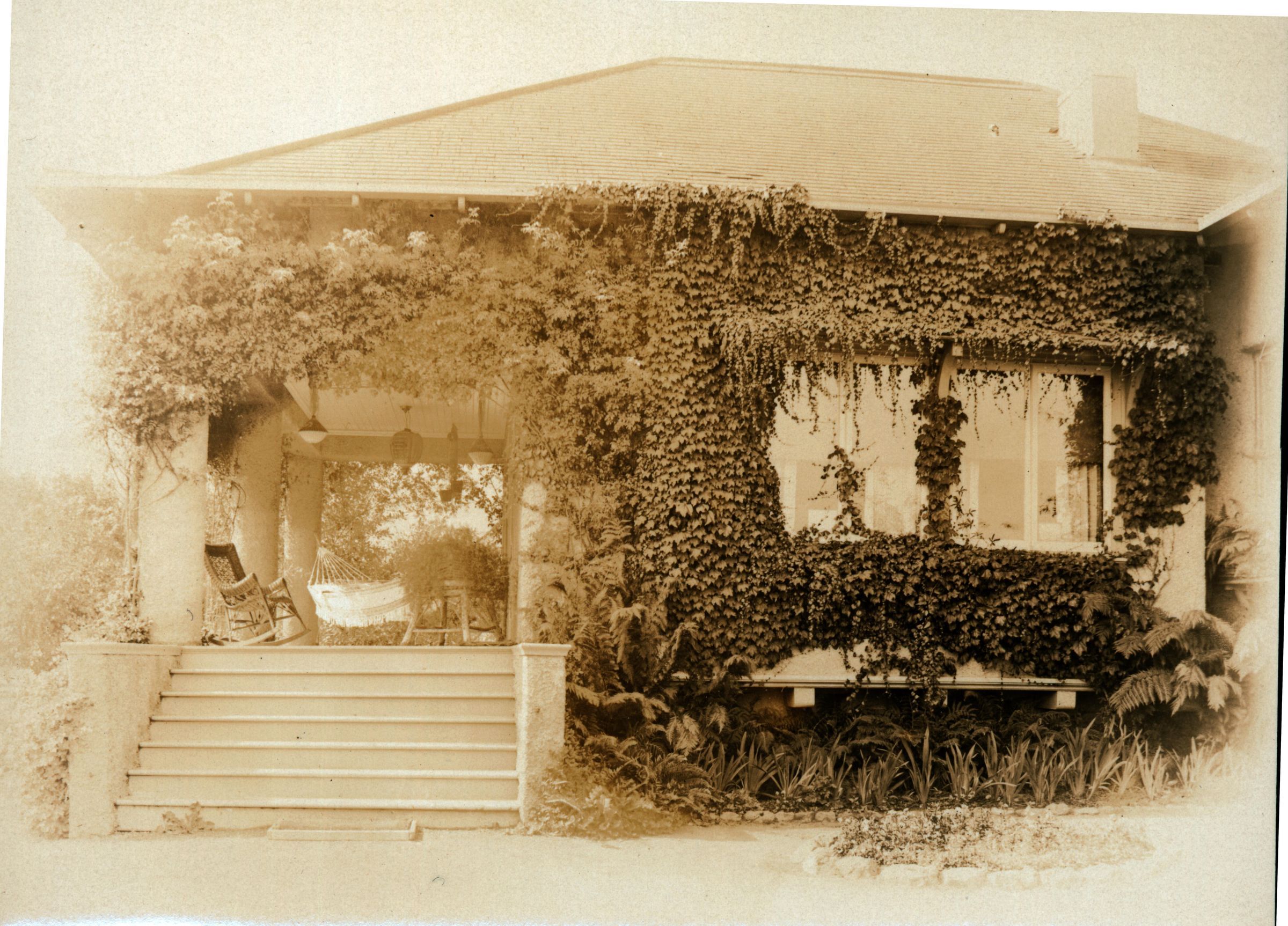 A view of the comfortable front porch on the farmhouse at Glen Una. FAR009Collection
